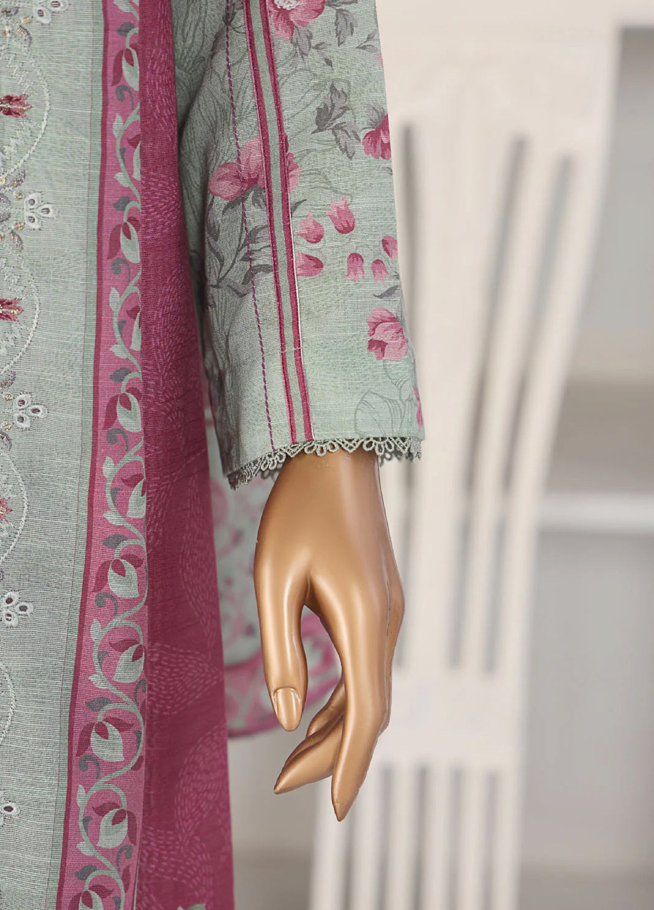 • Premium Digital Printed Khaddar Embroidered Cutwork Dupatta