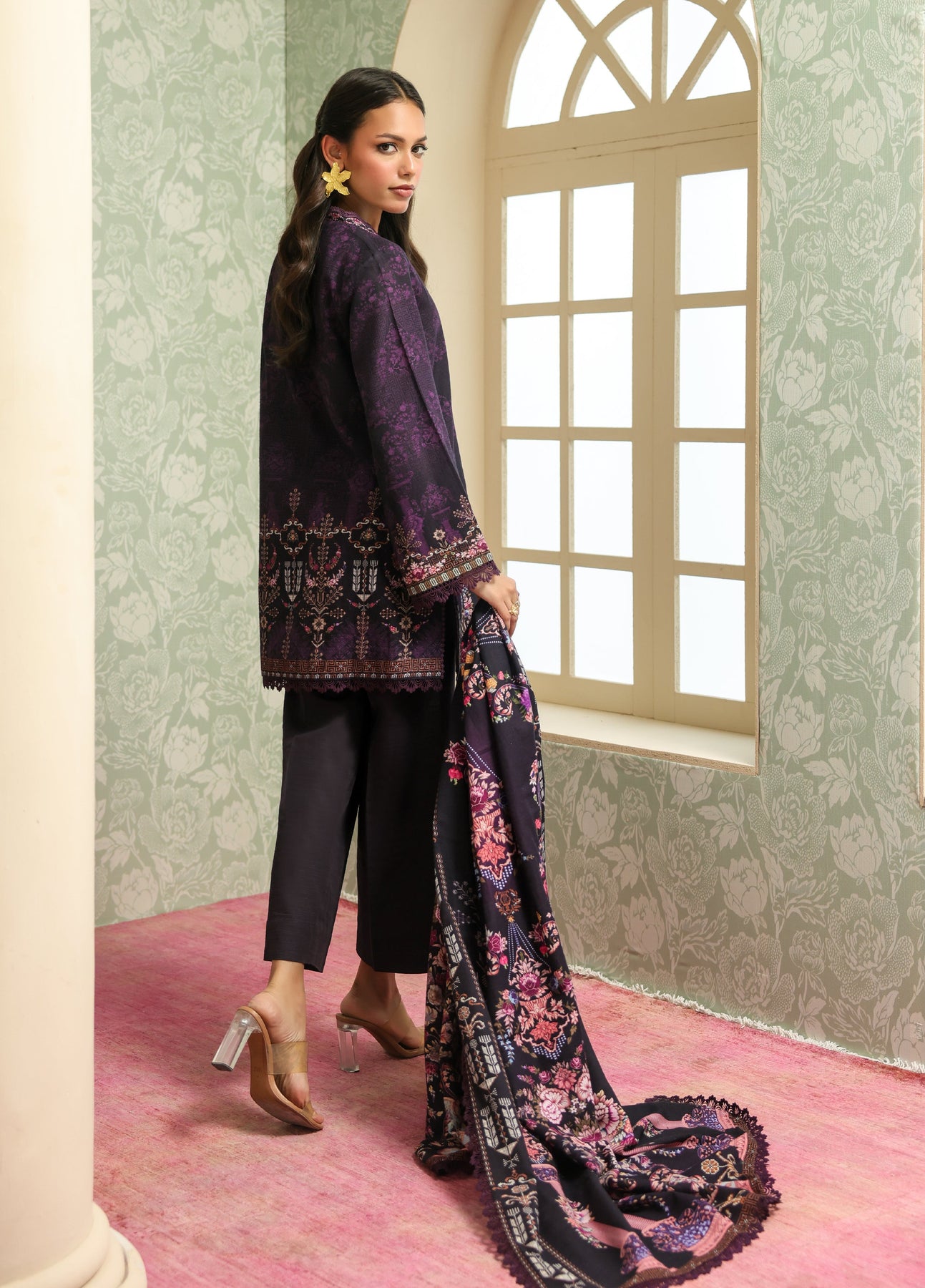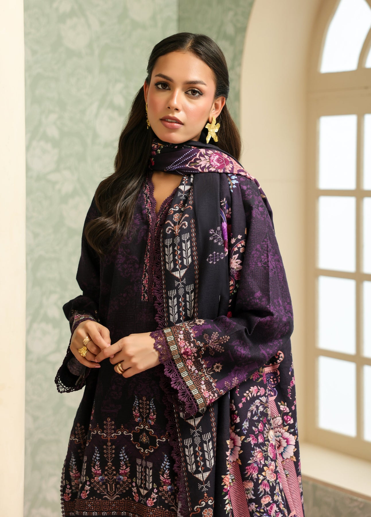 Sahar Printed Khaddar Suits Unstitched 3 Piece AW2-25-22 Plum Noir - Winter Collection