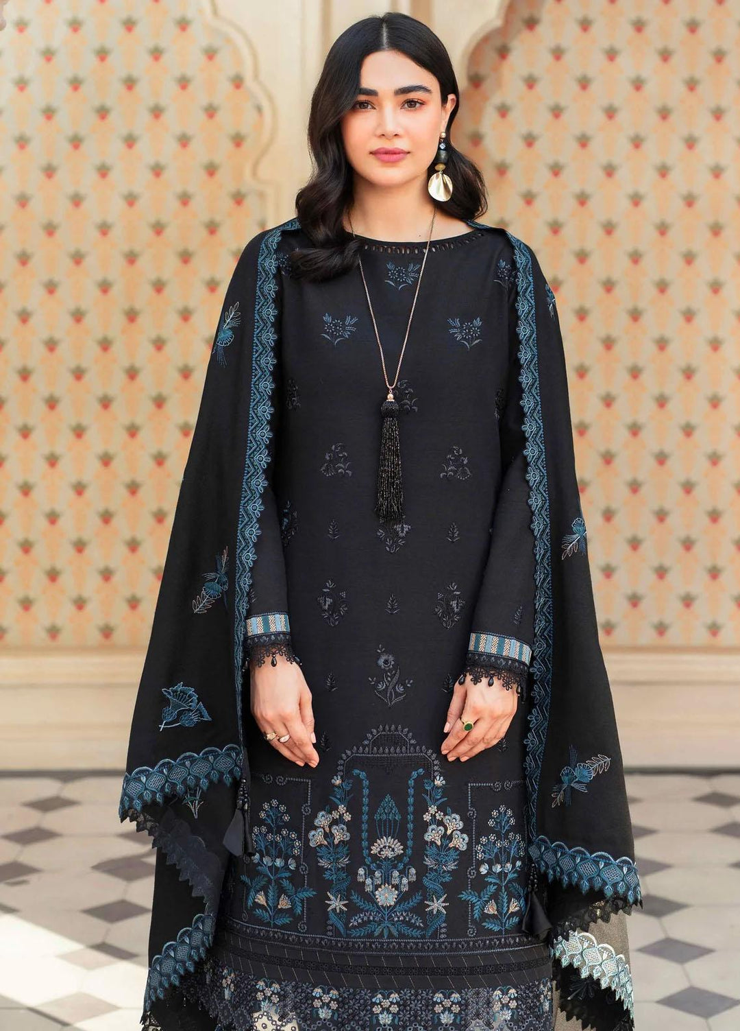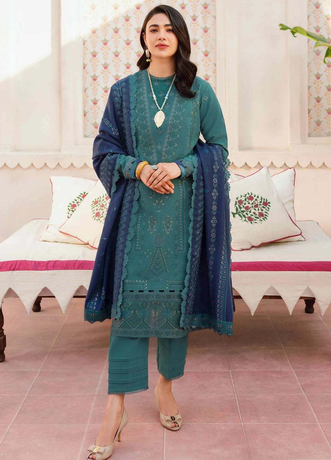 Taabeer By Seran Embroidered Khaddar Suits Unstitched 3 Piece SRN23T Falak - Luxury Collection