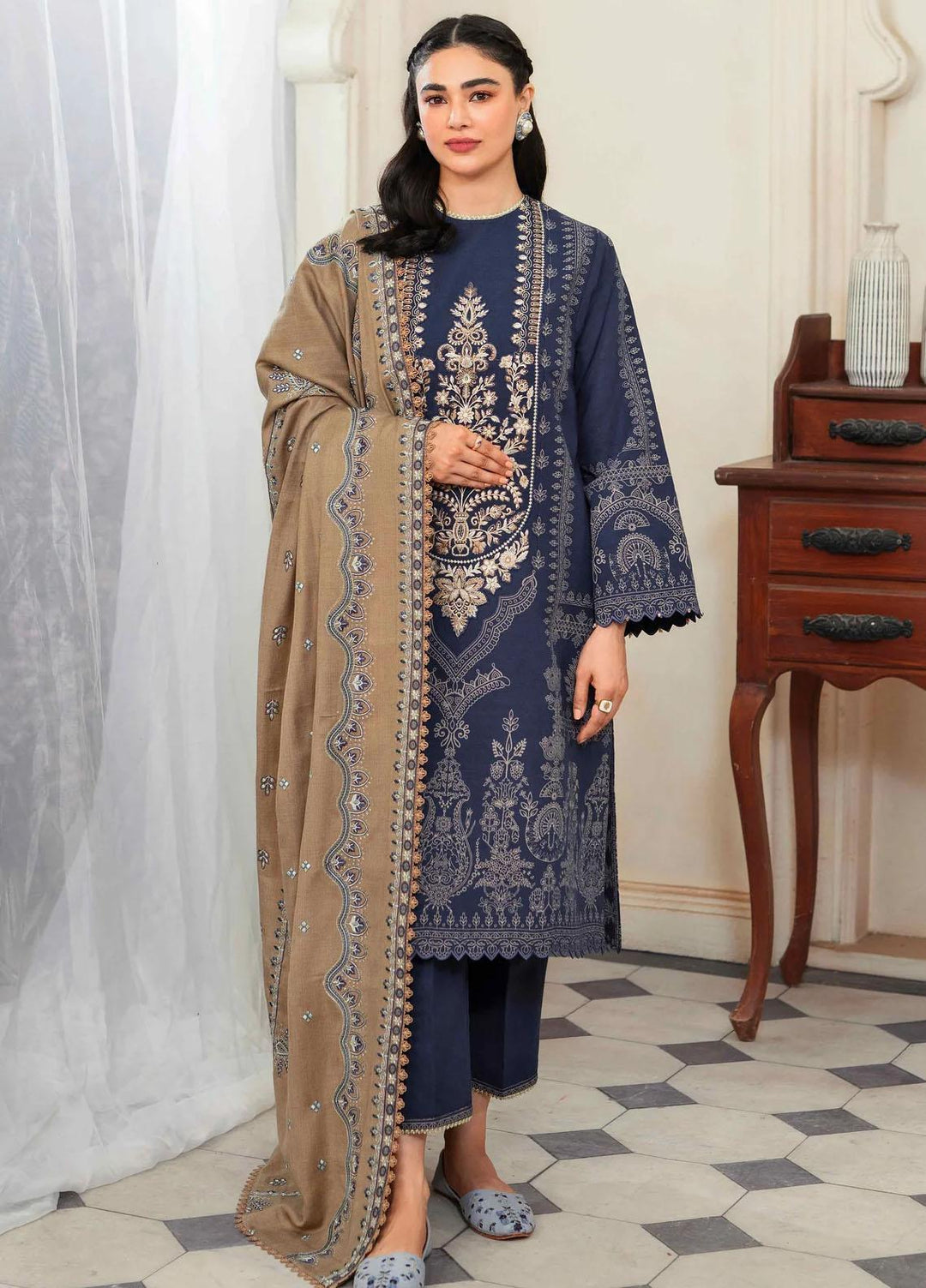 Taabeer By Seran Embroidered Khaddar Suits Unstitched 3 Piece SRN23T Nayaab - Luxury Collection