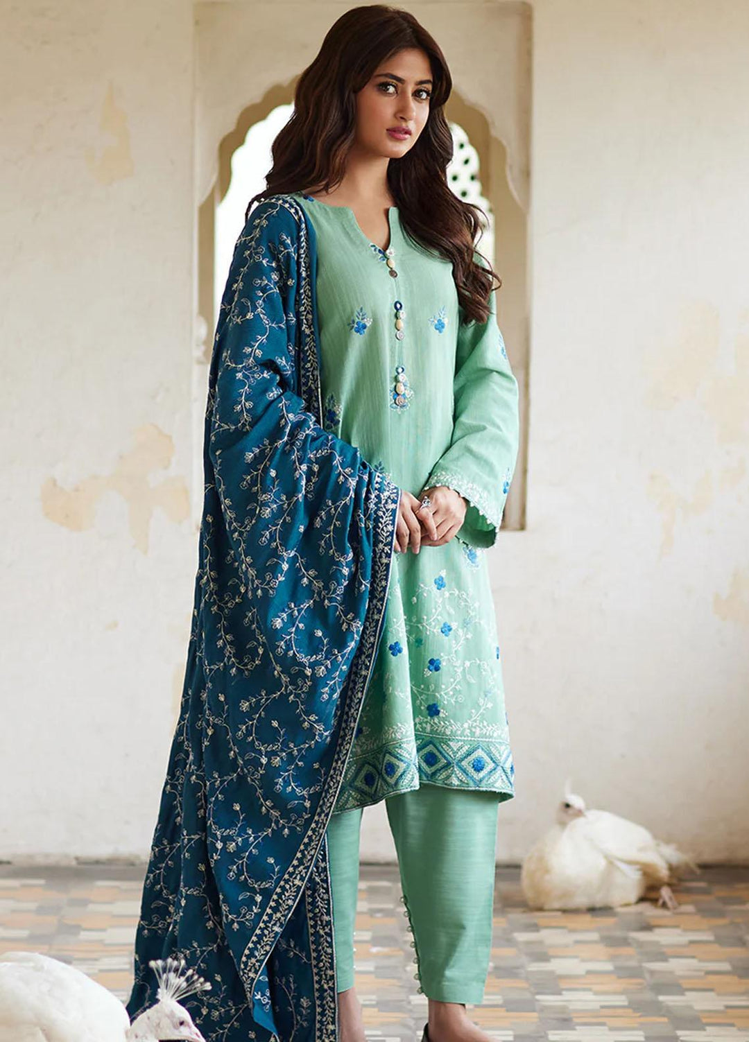 Cross Stitch Embroidered Khaddar Suits Unstitched 3 Piece CS23KL Teal Lattice - Winter Collection