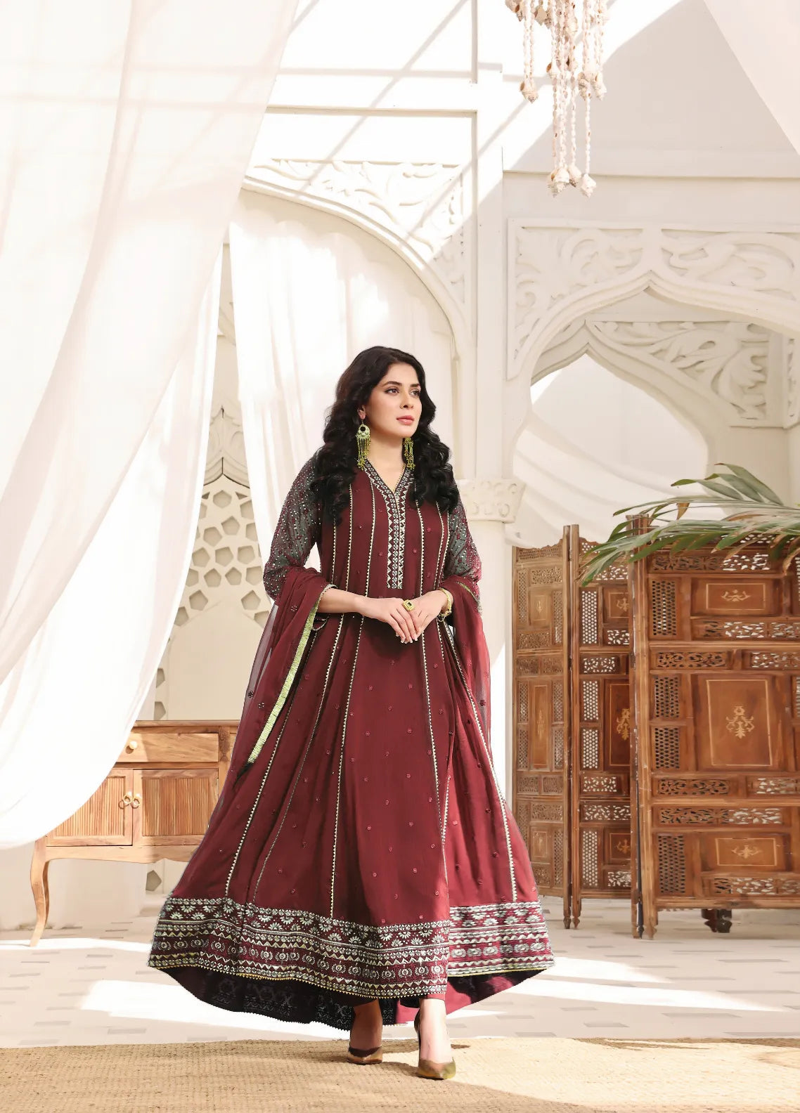 Abaan Zohan Pret Embroidered Chiffon 3 Piece Suit Kashish Maroon