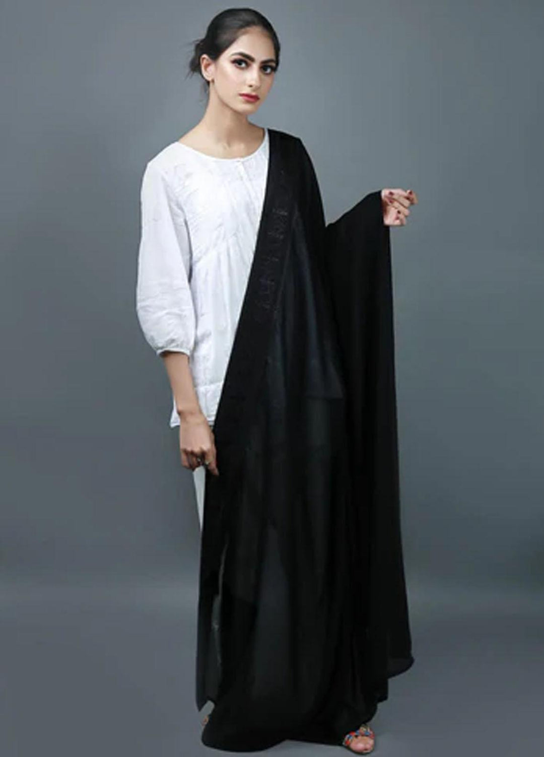Abaya pk Embroidered Chiffon Chadar ABA22EC BLACK DELICATE - Embroidered Chadar