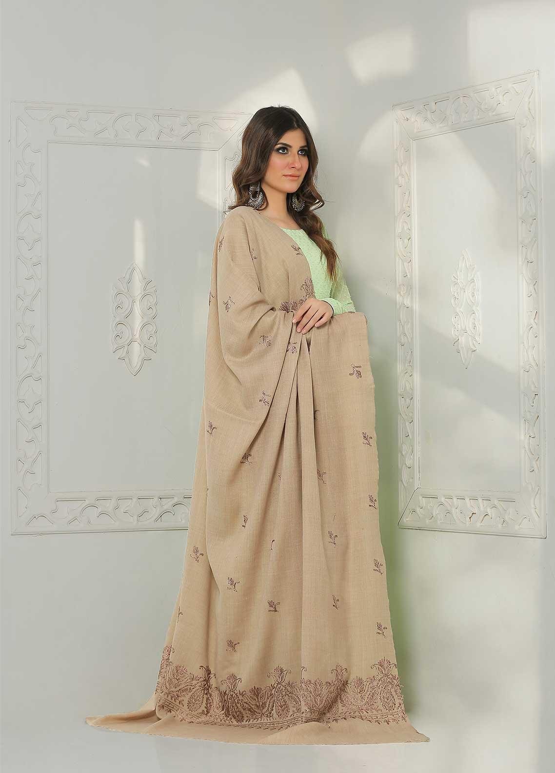 Sanaulla Exclusive Range Embroidered Pashmina Shawl AKP-38 Brown-2 - Pashmina Shawls
