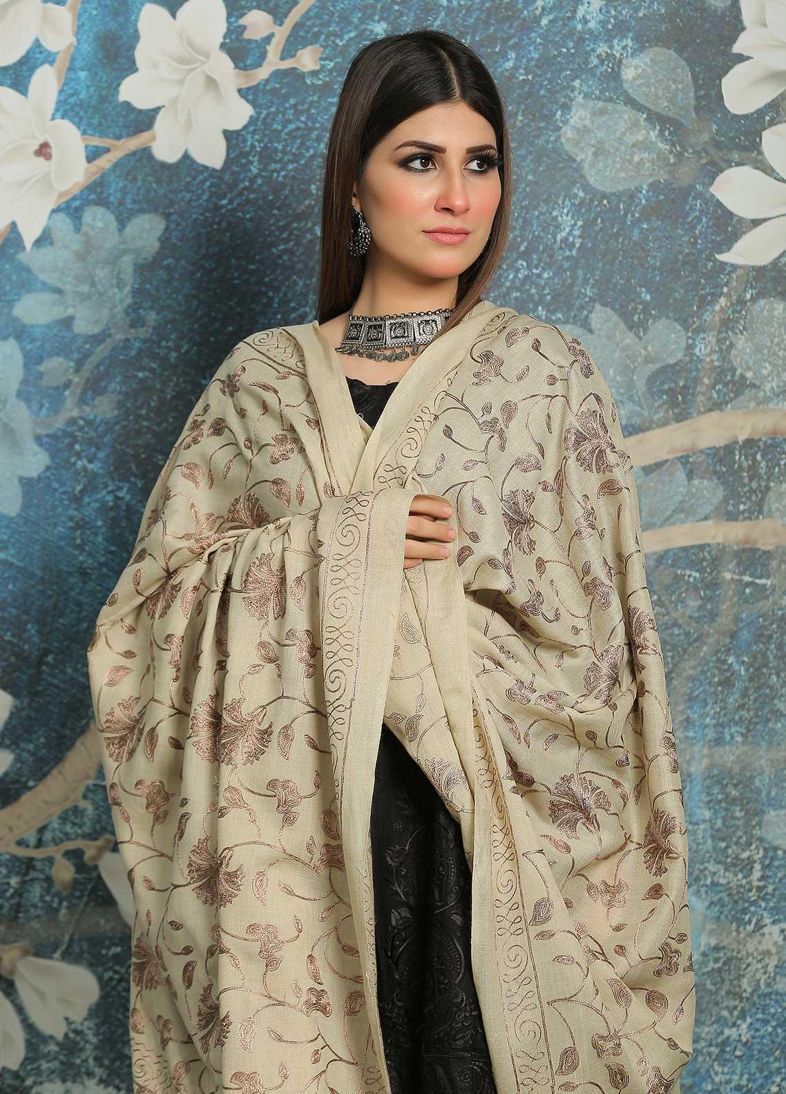 Sanaulla Exclusive Range Embroidered Pashmina Shawl MIR-13 Beige 2 - Pashmina Shawls is available at sanaulla online store. We have complete variety of Shawl Embroidered with us. Complete range of Sanaulla Exclusive Range available and 100% Original. We deliver Worldwide, and accept COD in Pakistan.