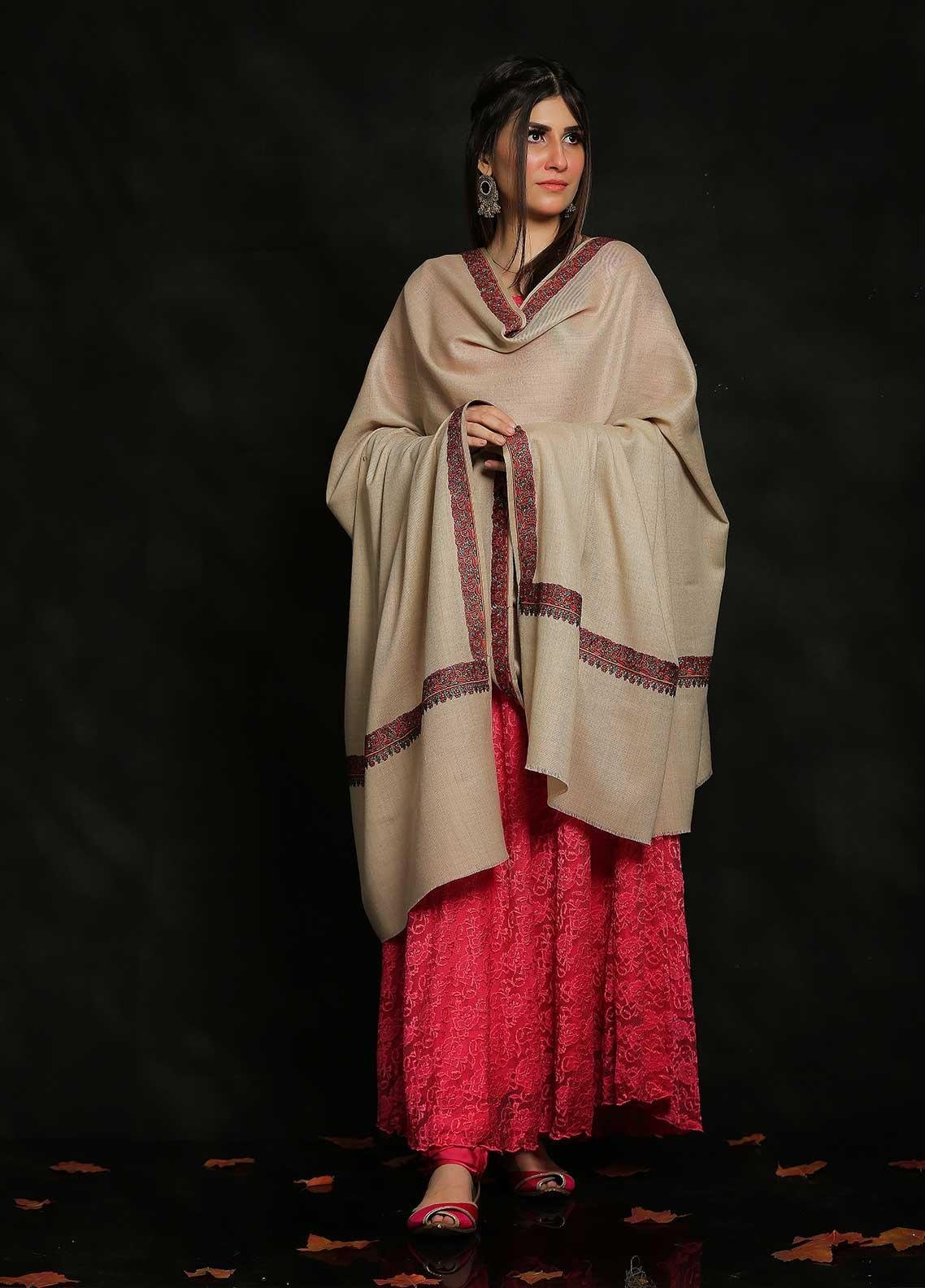 Sanaulla Exclusive Range Embroidered Pashmina Shawl MIR-29 Fawn 3 - Pashmina Shawls