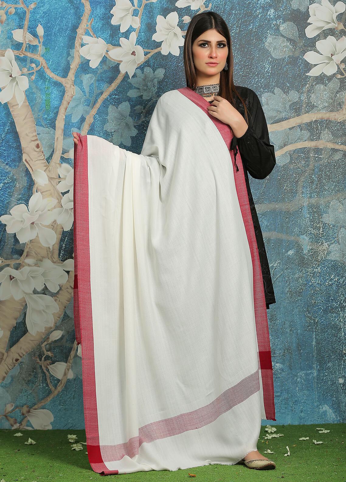 Sanaulla Exclusive Range Embroidered Pashmina  Shawl MIR-751-White - Pashmina Shawls