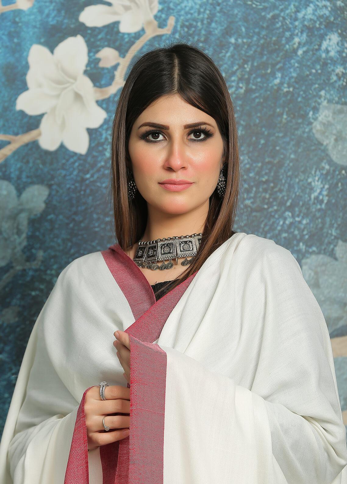 Sanaulla Exclusive Range Embroidered Pashmina Shawl MIR-751-White - Pashmina Shawls