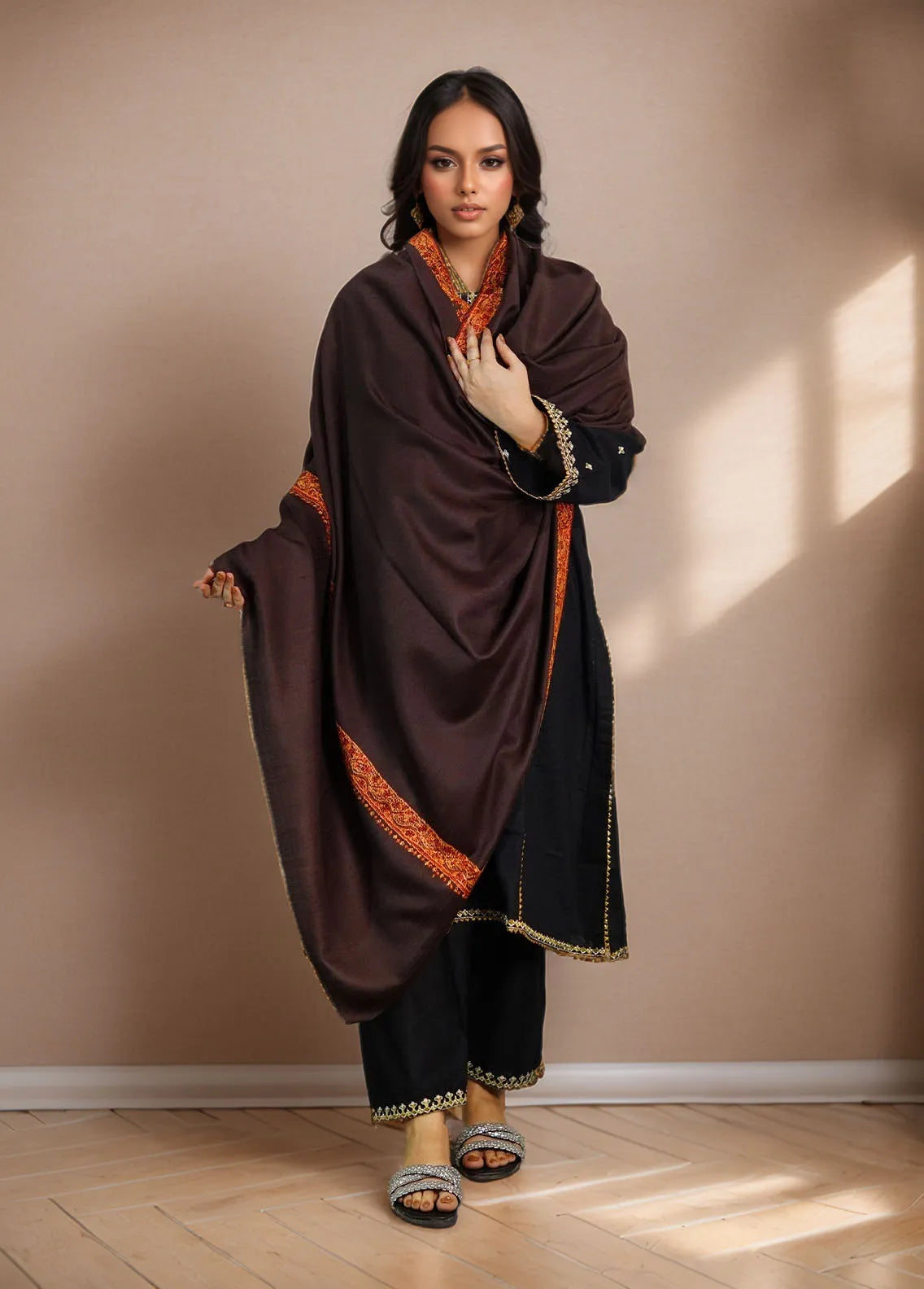 Sanaulla Exclusive Range Pashmina Shawl KPS D-51 Dark Brown 1 - Winter Collection