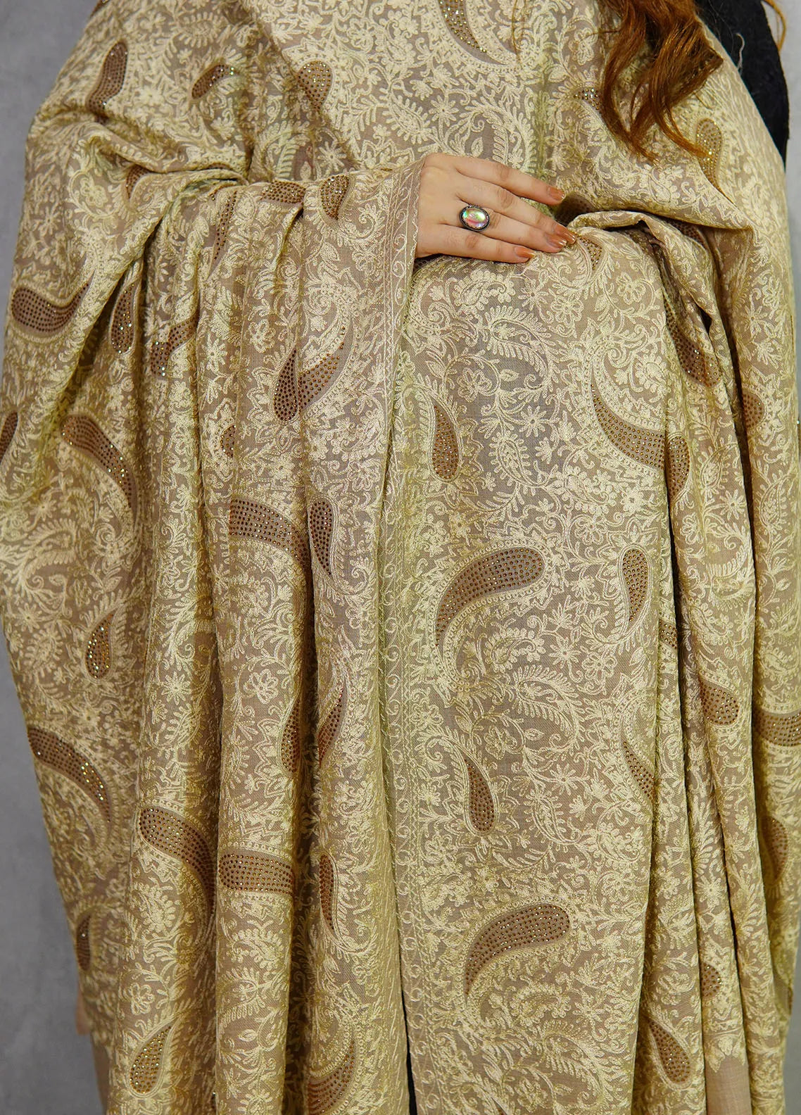 Sanaulla Exclusive Range Pashmina Shawl MAMA D-1 Light Brown - Winter Collection