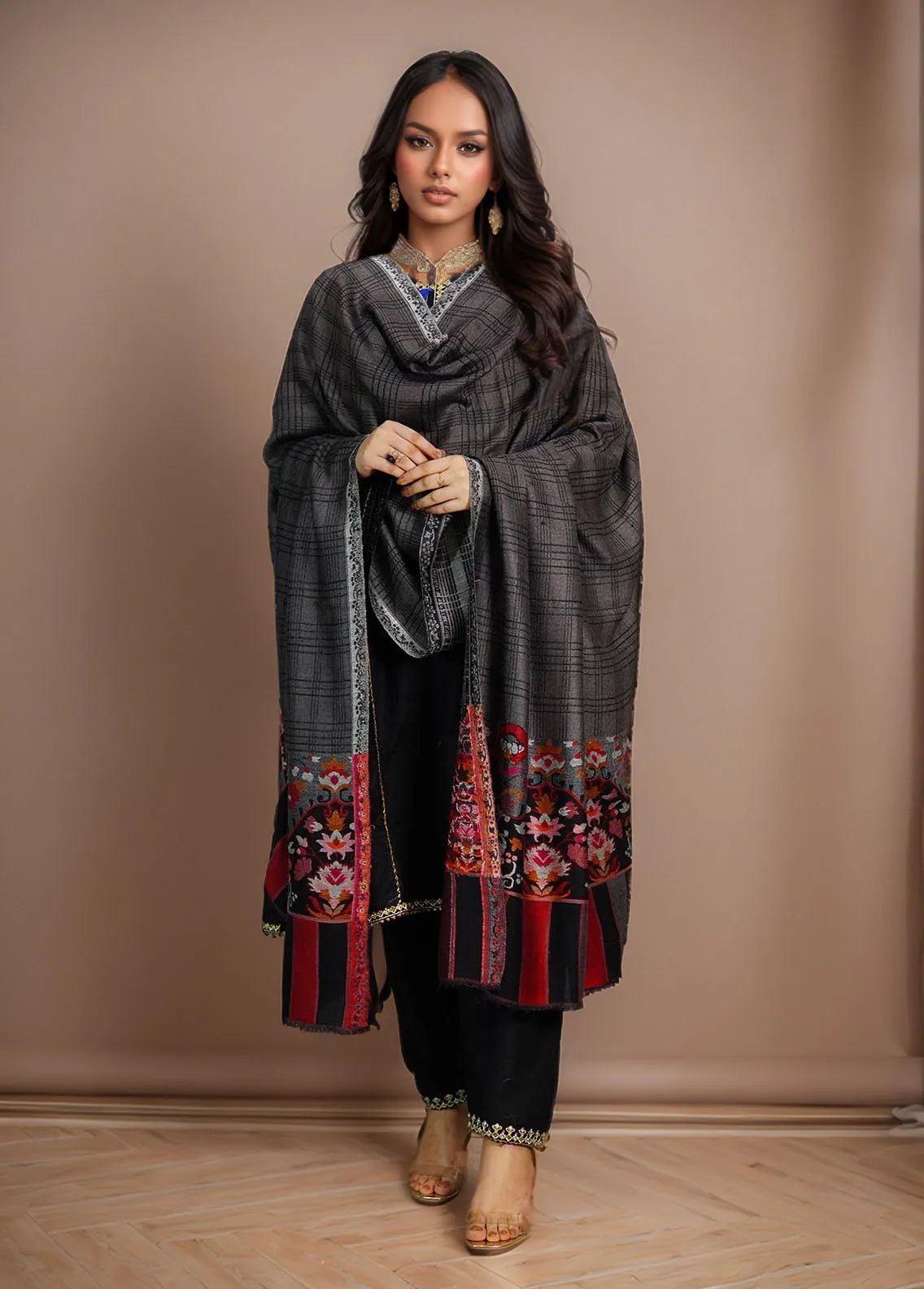 Sanaulla Exclusive Range Pashmina Shawl MAMA D-22 Multi 3 - Winter Collection