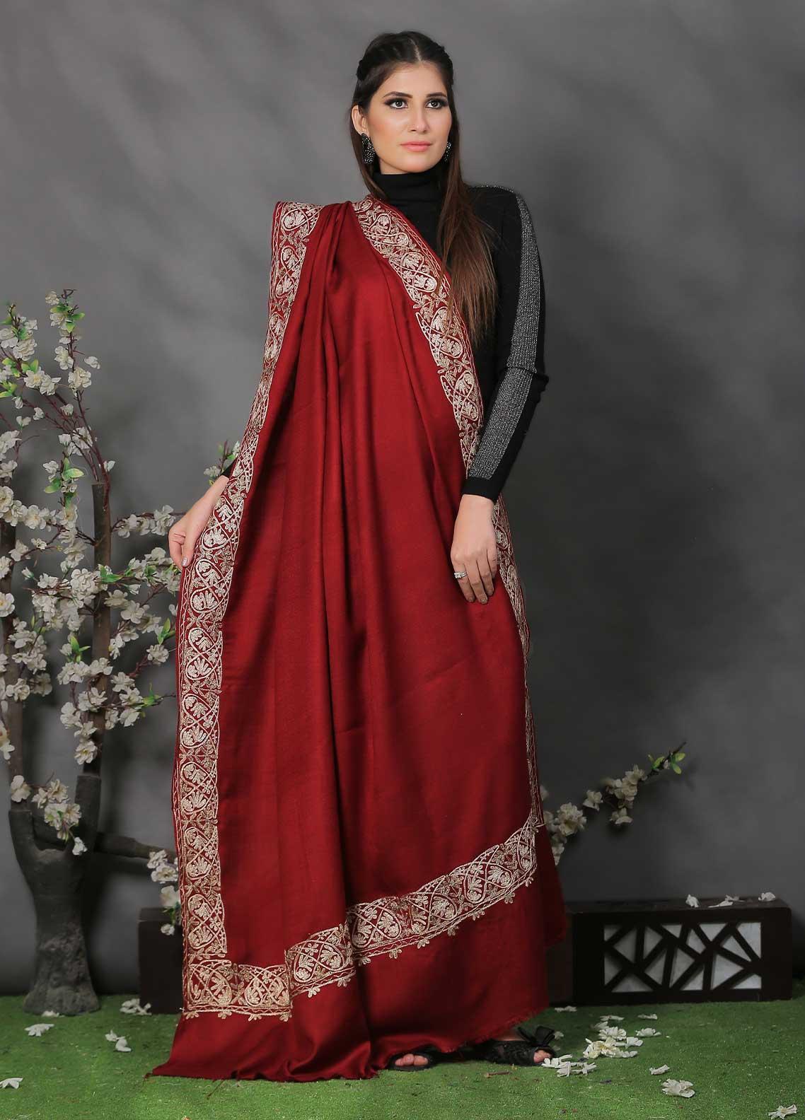 Sanaulla Exclusive Range Pashmina Shawl SU21PP AKP-42 Maroon-2 Pure Pashmina Shawls