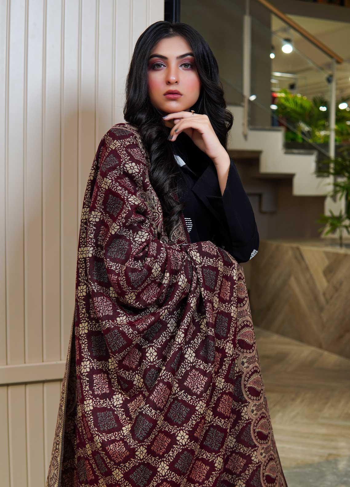 Sanaulla Exclusive Range Pashmina Shawls AKP-22 Maroon 06 - Pashmina Shawls