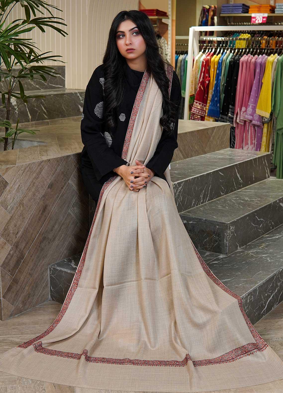 Sanaulla Exclusive Range Pashmina Shawls MAMA-18 Fawn-2 - Pashmina Shawls