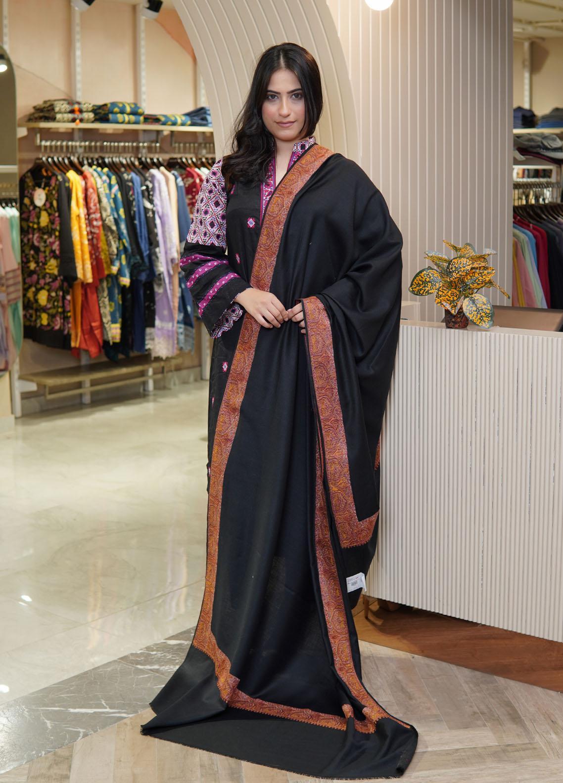 Sanaulla Exclusive Range Pashmina Shawls Mh Dour Sdt KPS-09 Black05 - Pashmina Shawls