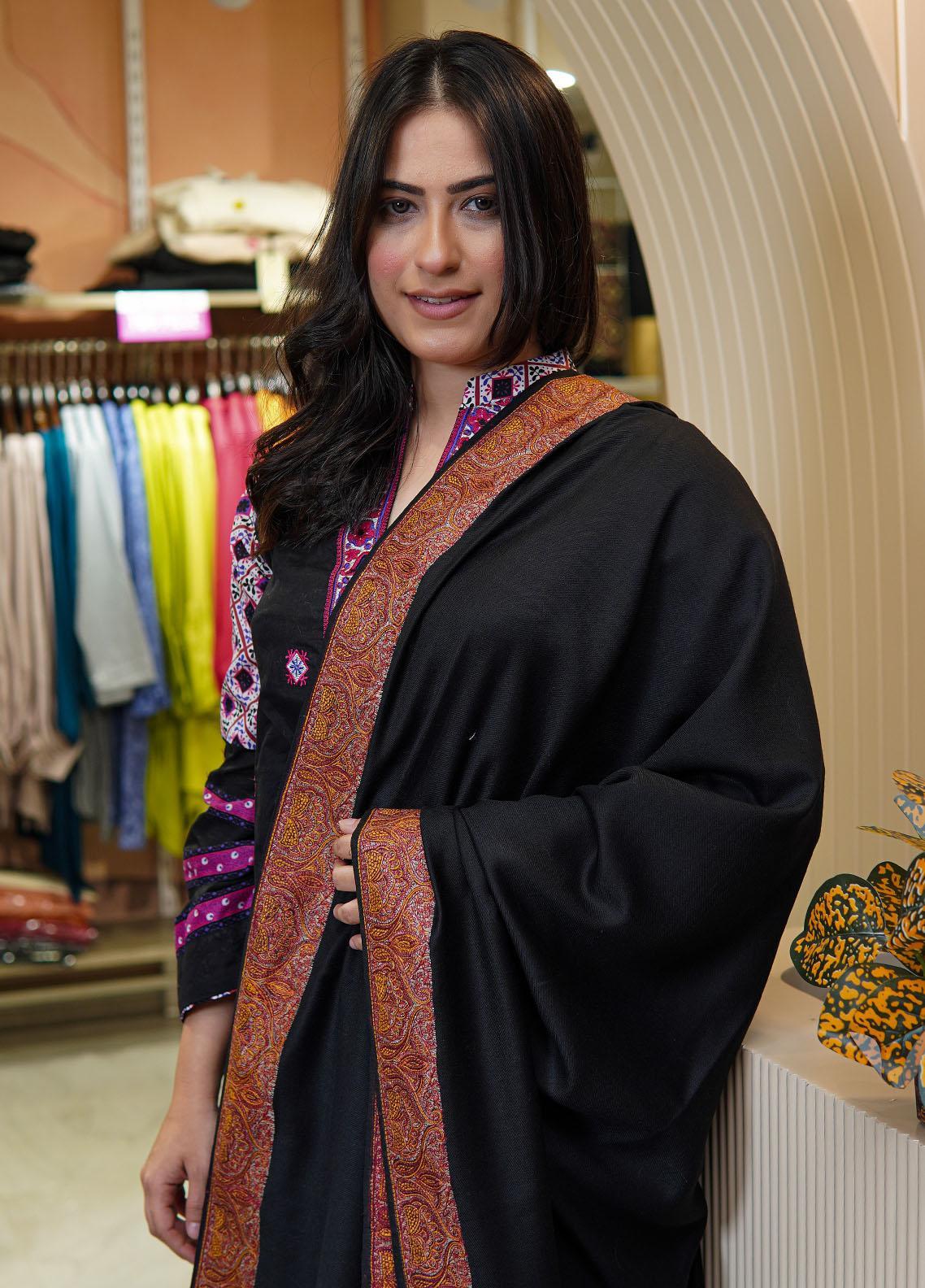 Sanaulla Exclusive Range  Pashmina  Shawls Mh Dour Sdt KPS-09 Black05 - Pashmina Shawls