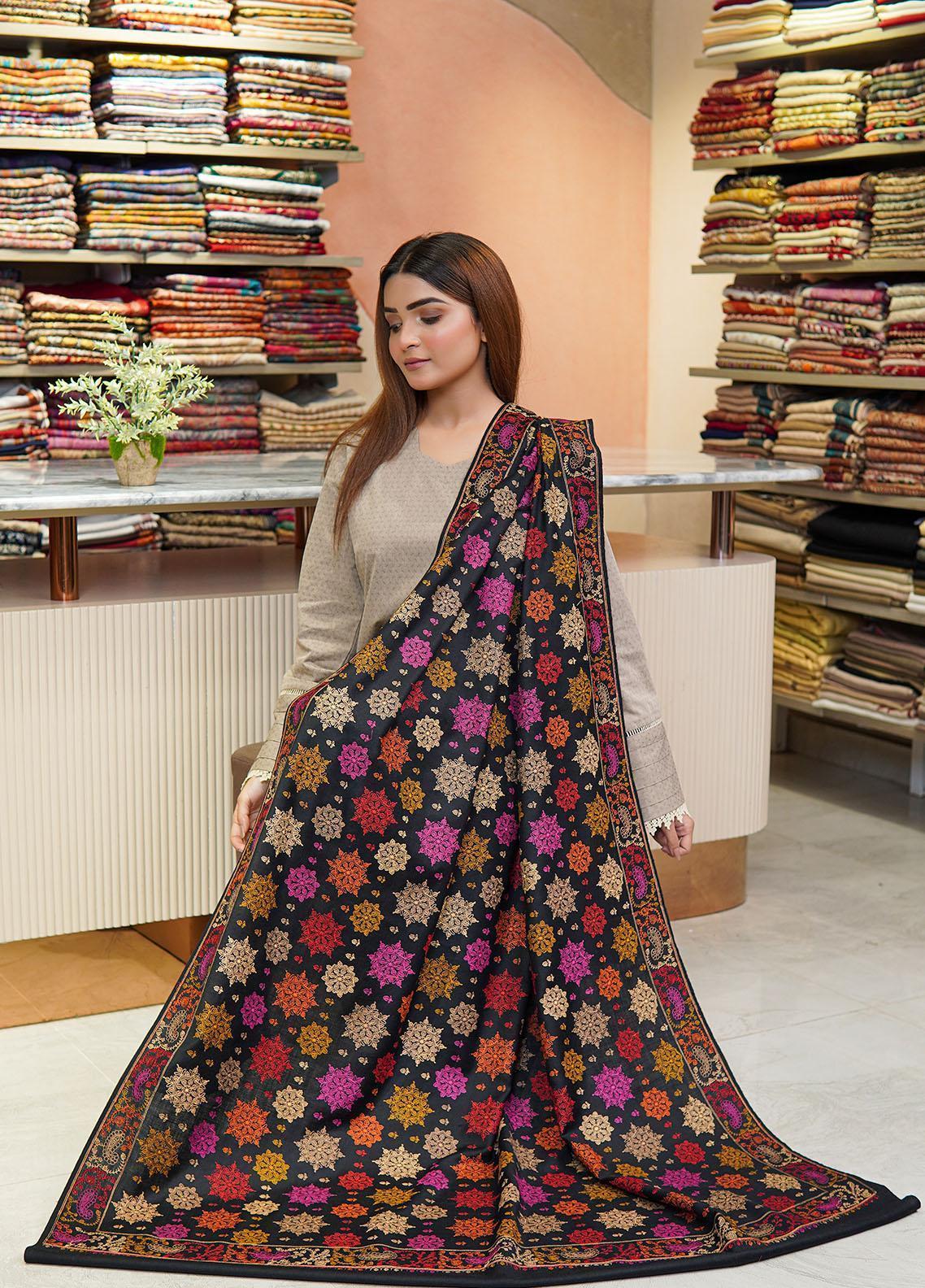 Sanaulla Exclusive Range Pashmina Shawls MH Multi Buti Jaal Hw KPS-25 Black01 - Pashmina Shawls