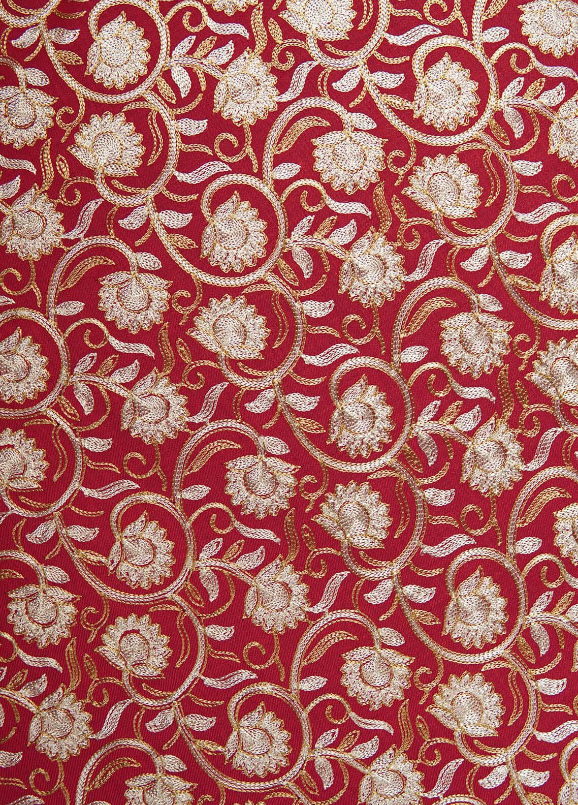 Sanaulla Exclusive Range  Pashmina  Shawls Nalki Flower Boder Jaal KPS-47 Red-02  - Pashmina Shawls