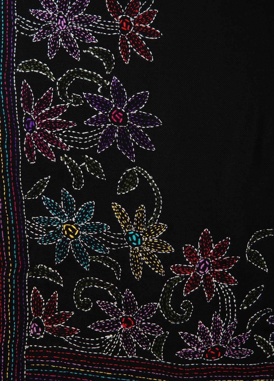Sanaulla Exclusive Range  Pashmina  Shawls Shadow Emb Paala KPS-08 Dark Black-02 - Pashmina Shawls