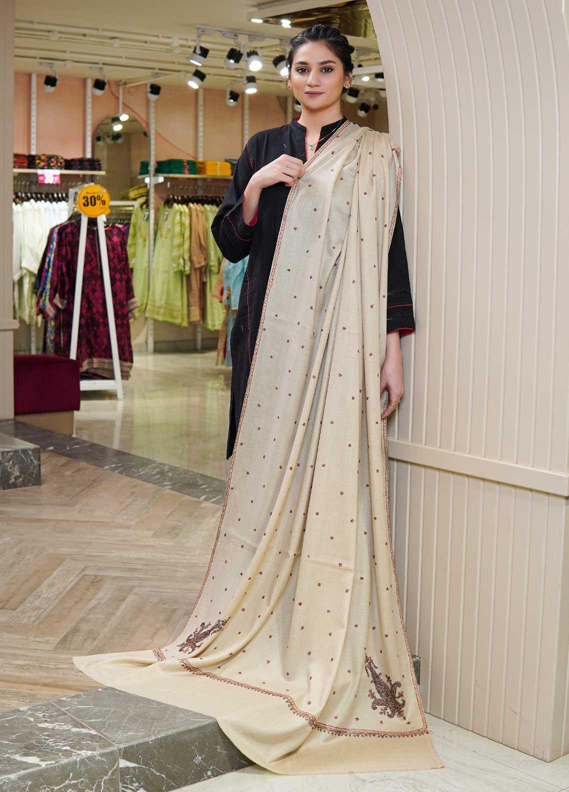 Sanaulla Exclusive Range Pashmina Shawls Star Buti KPS-05 fawn02 - Pashmina Shawls