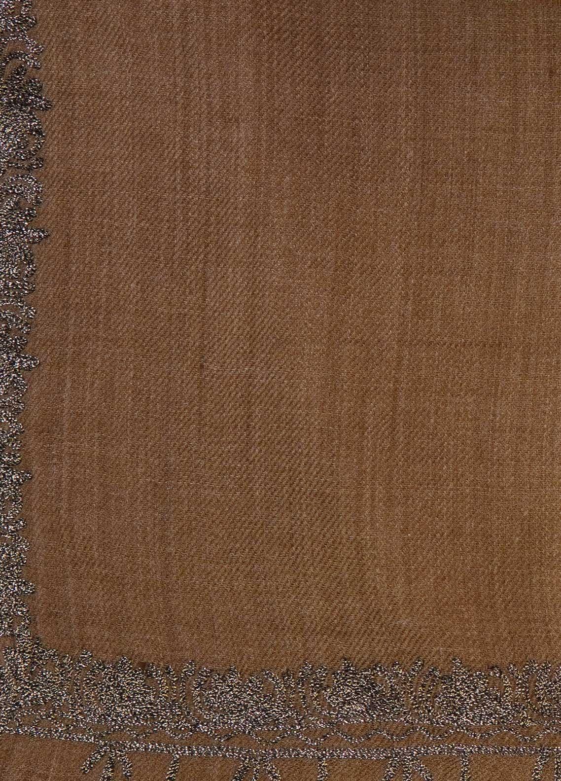 Sanaulla Exclusive Range Pashmina Shawls Zarri Hashey A Sp C AD KPS-31 Brown02 - Pashmina Shawls