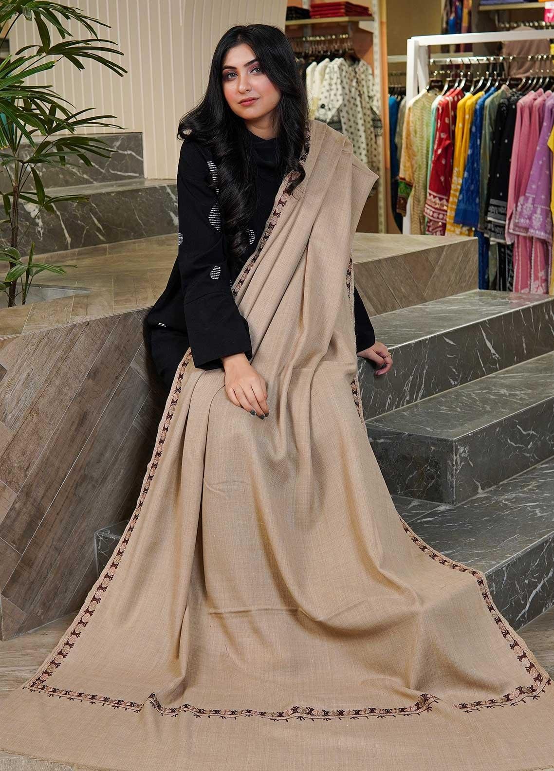 Sanaulla Exclusive Range  Pashmina  Shawls Zarri Hashey A Sp C AD KPS-31 Fawn04 - Pashmina Shawls