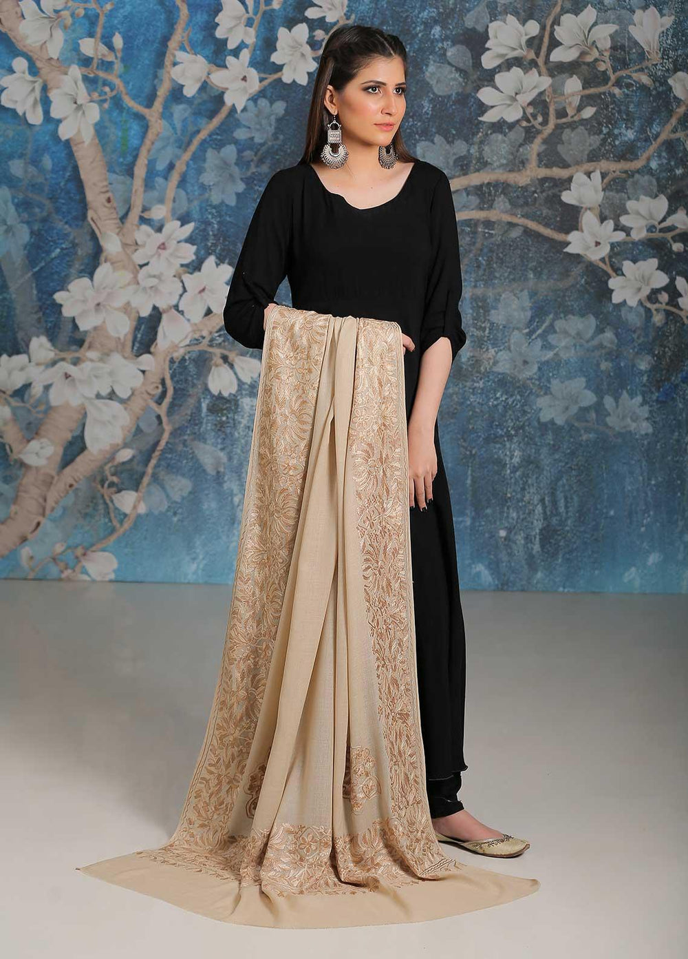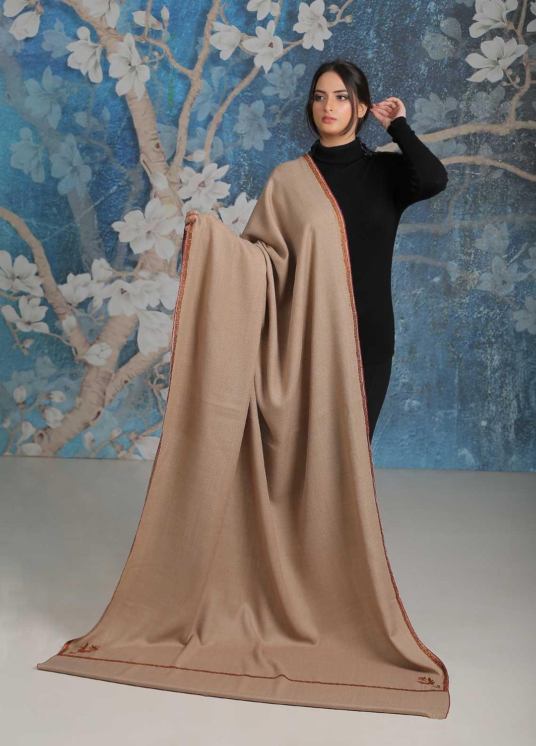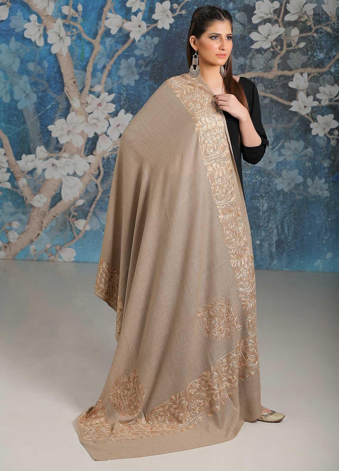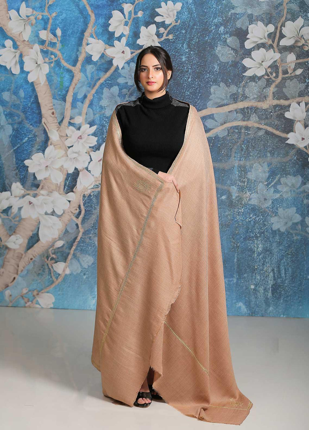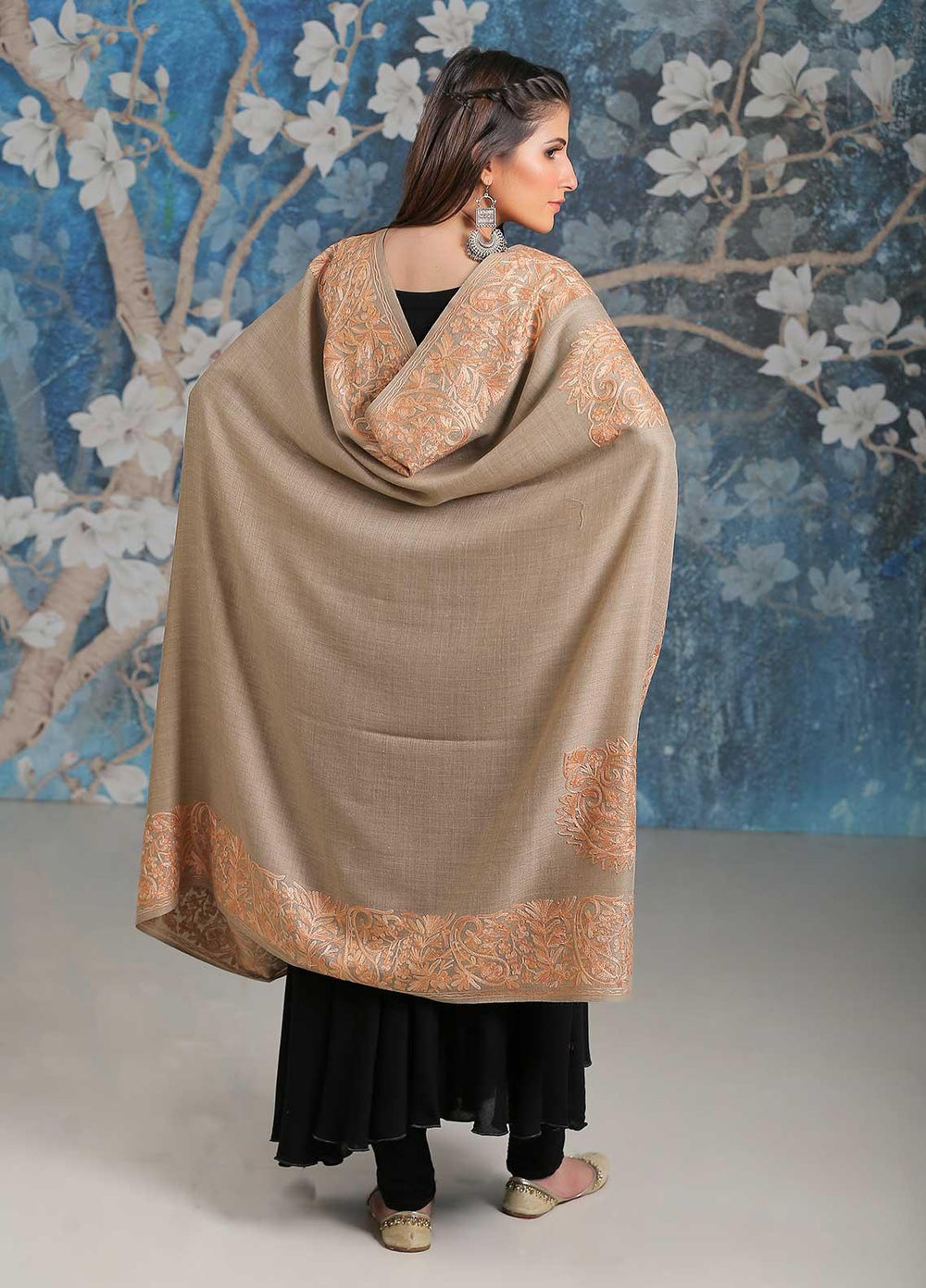 Sanaulla Exclusive Range Embroidered Pashmina Shawl AKP-24 Fawn-2 - Pashmina Shawls