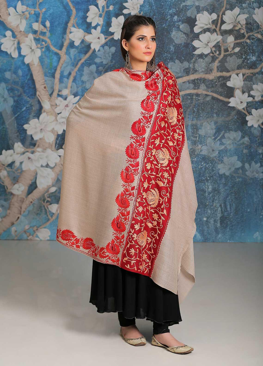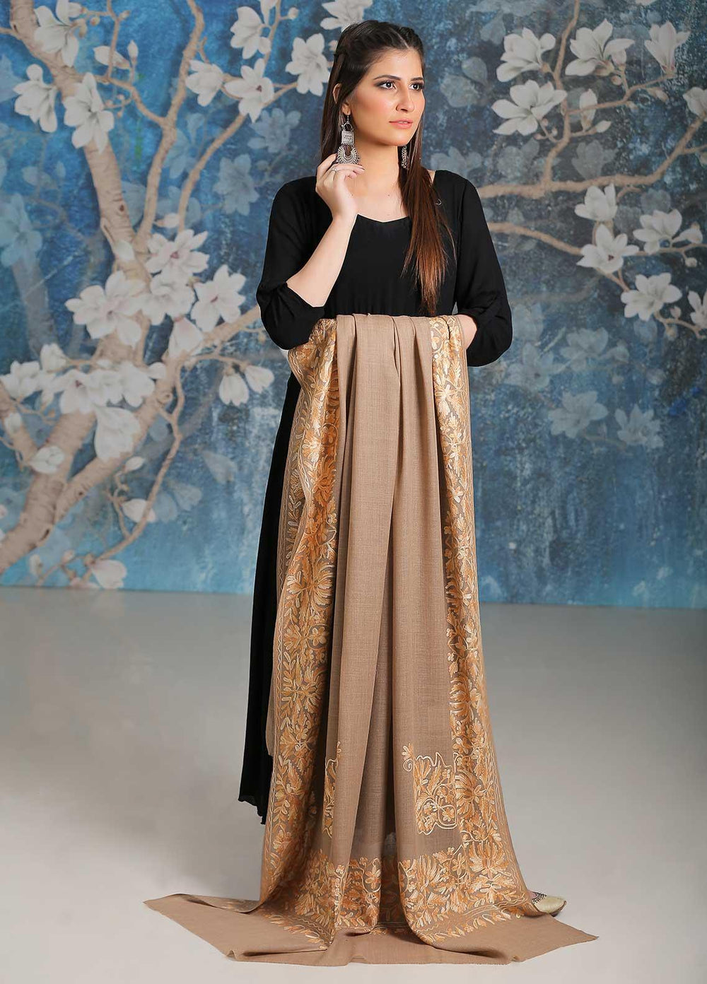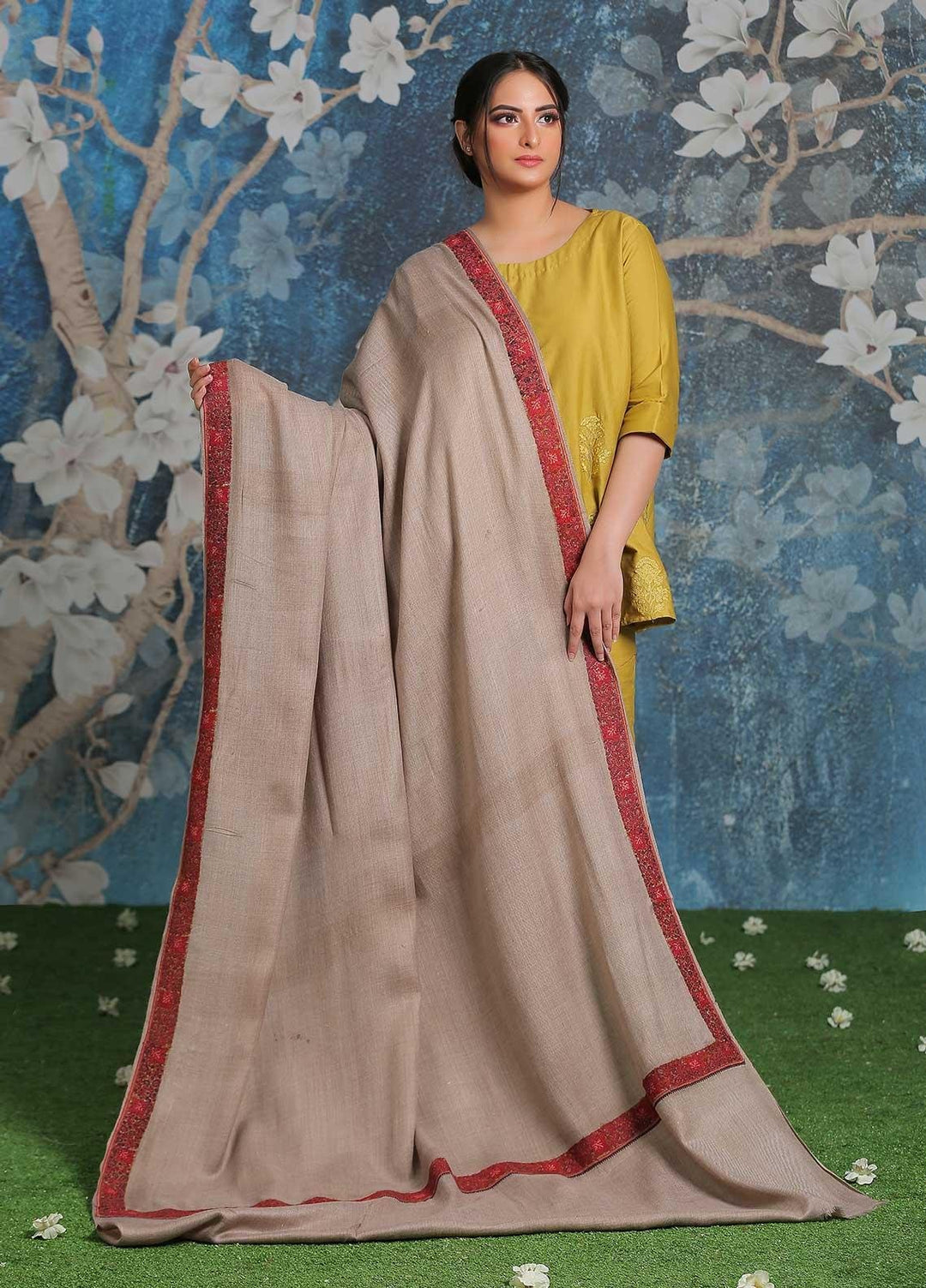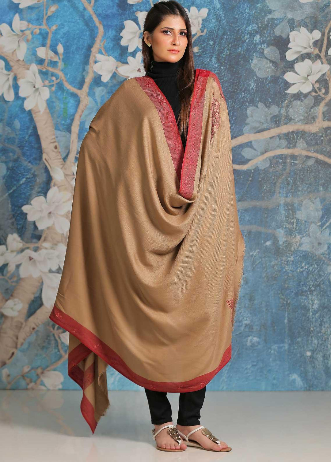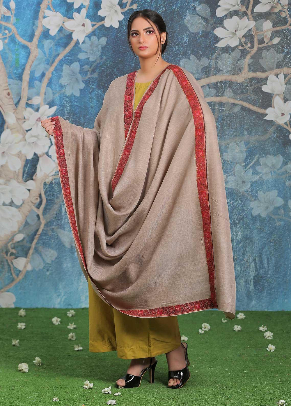 Sanaulla Exclusive Range Embroidered Pashmina Shawl AKP-24 Fawn-2 - Pashmina Shawls