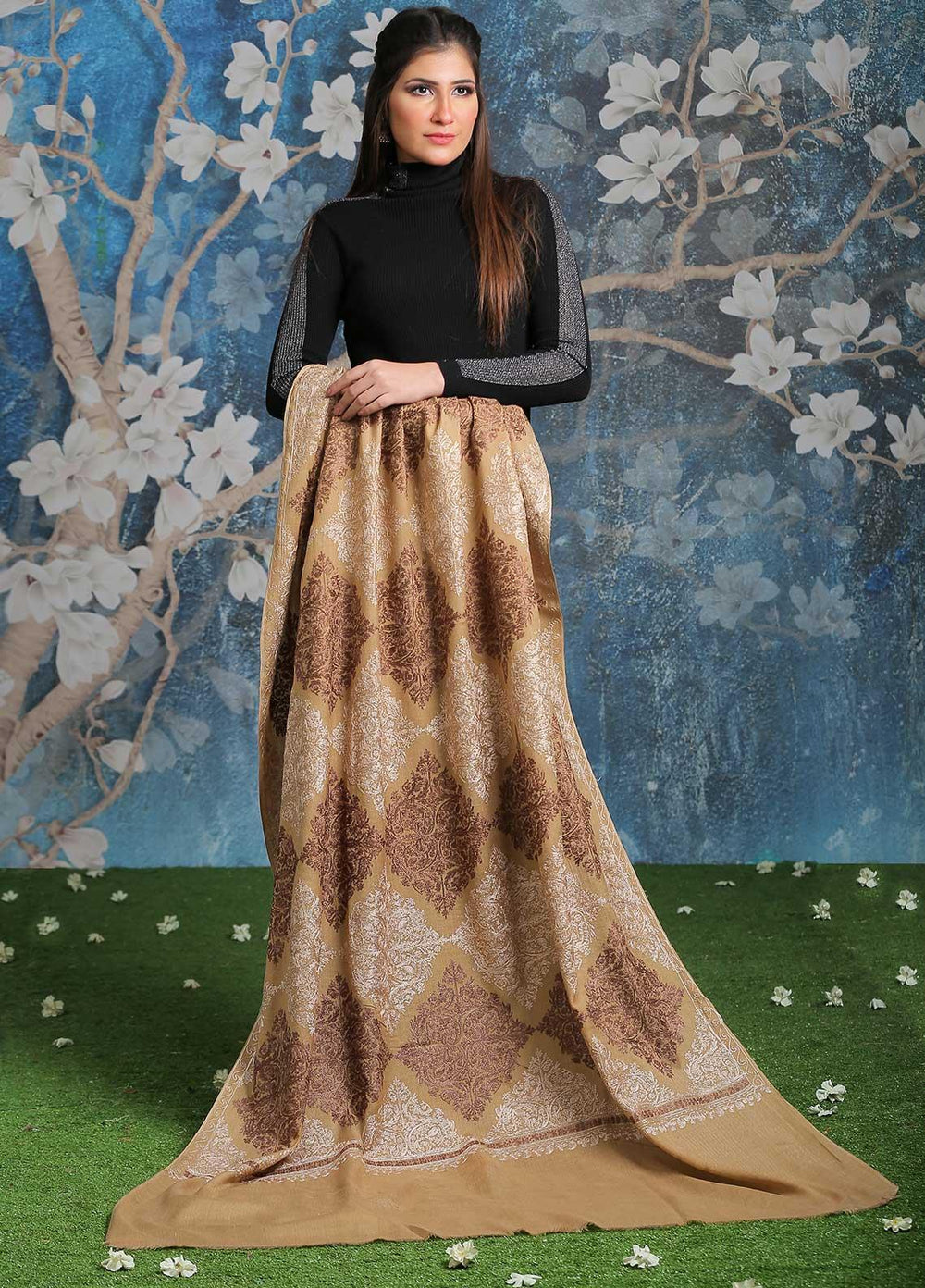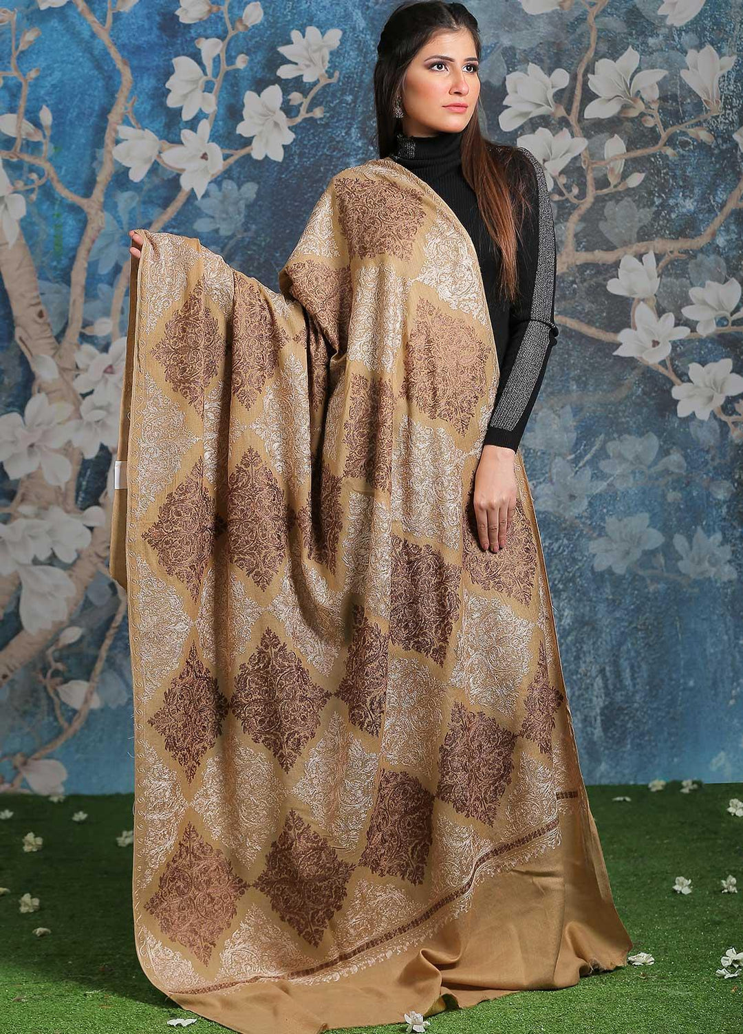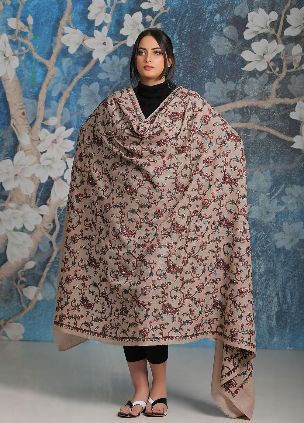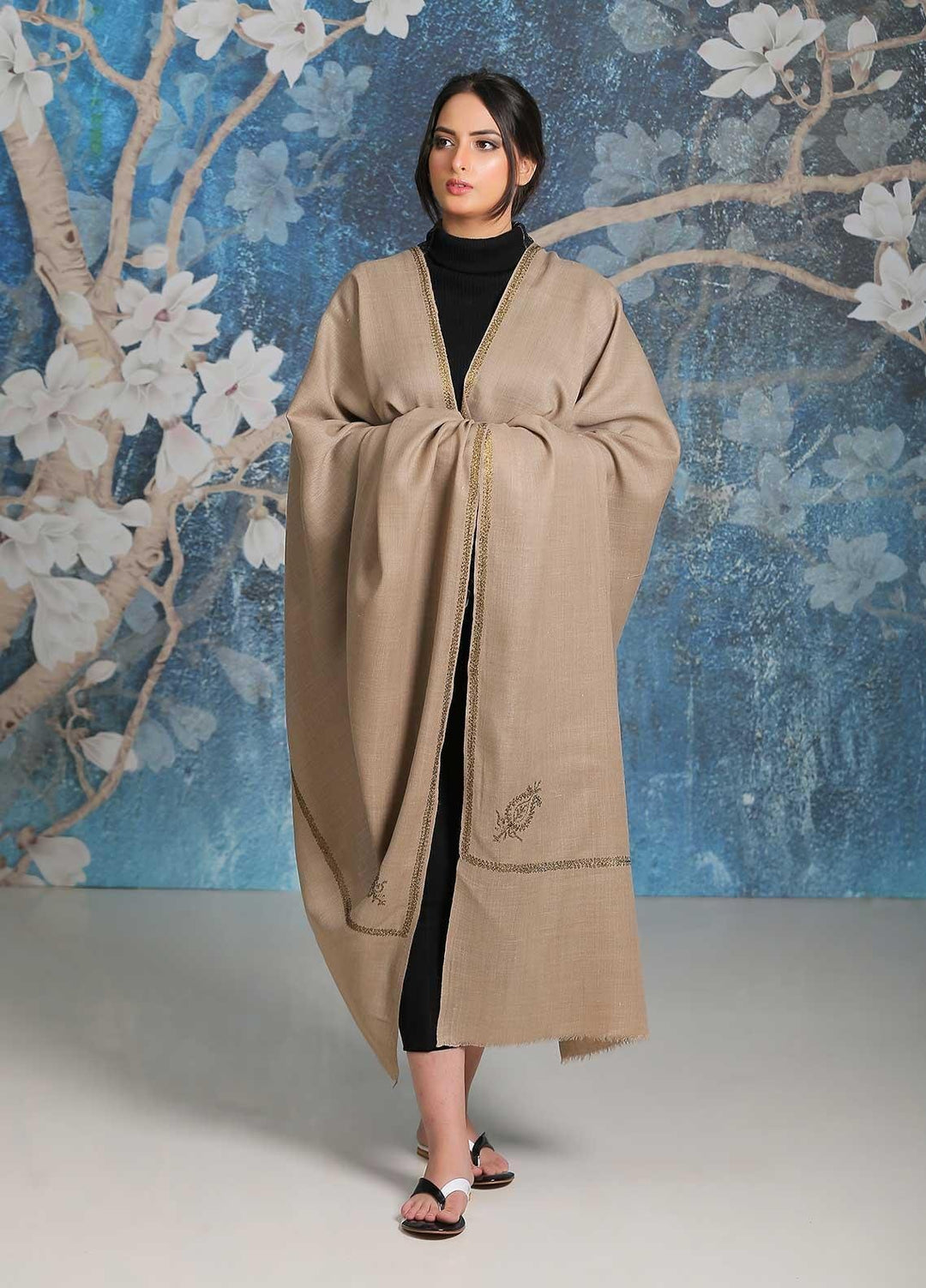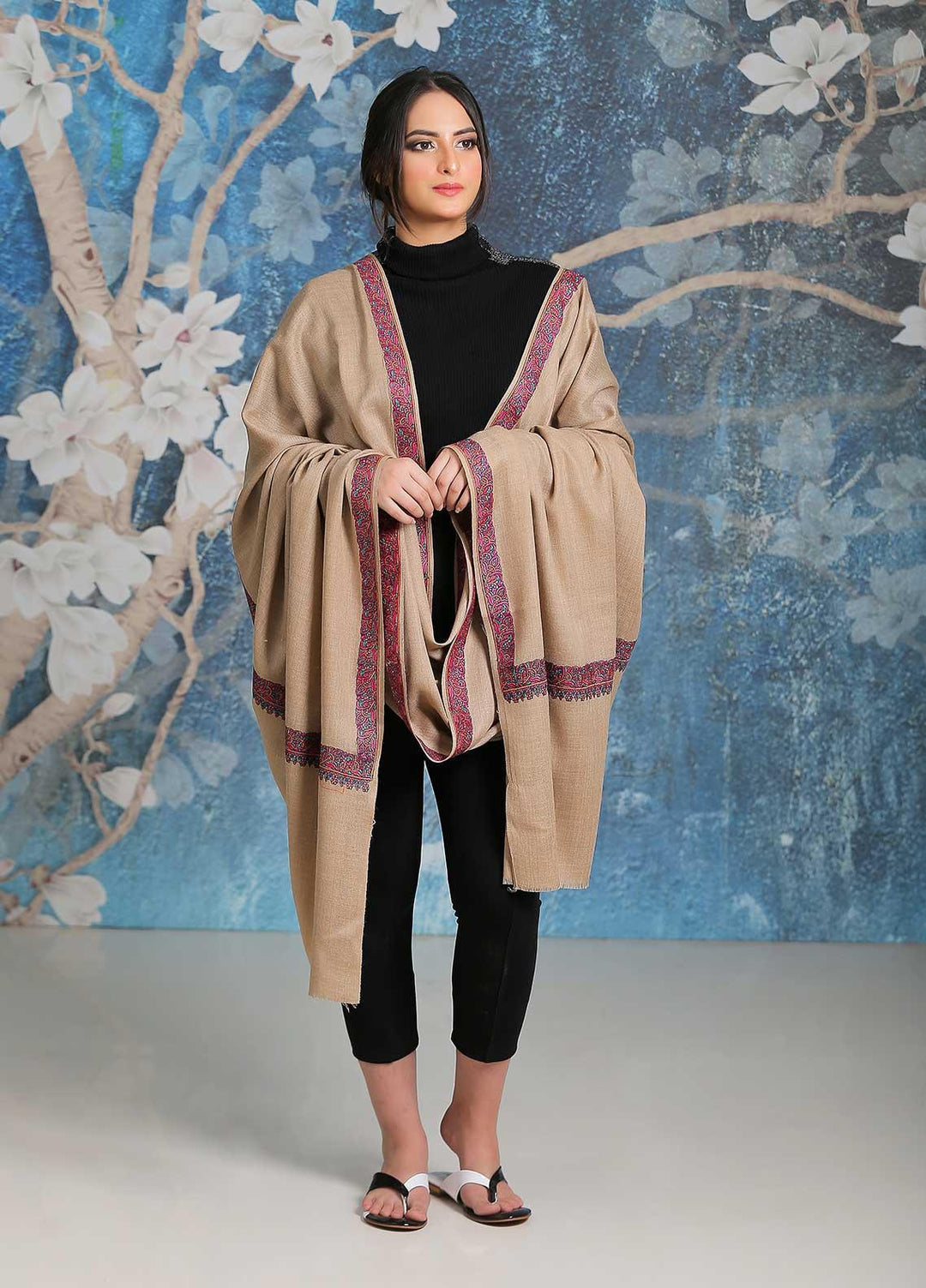Sanaulla Exclusive Range Embroidered Pashmina Shawl SU21PP MIR-25 Fawn 1 - Pure Pashmina Shawls