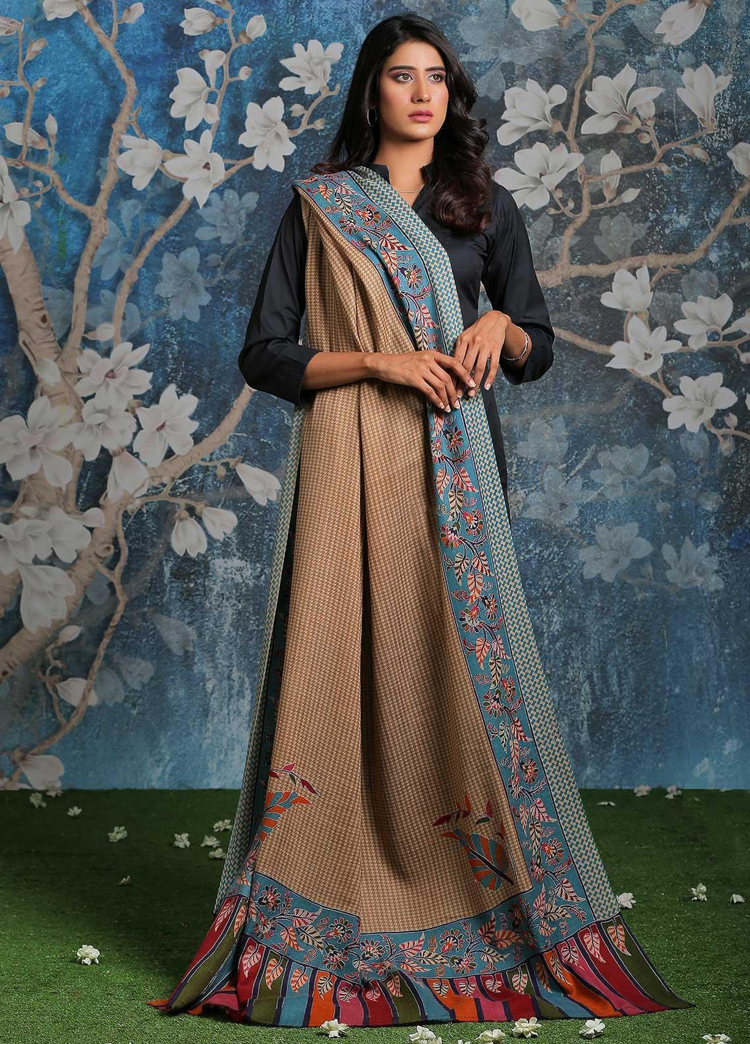 Sanaulla Exclusive Range Embroidered Pashmina Shawl SU21PP MIR-28 Brown 1 - Pure Pashmina Shawls
