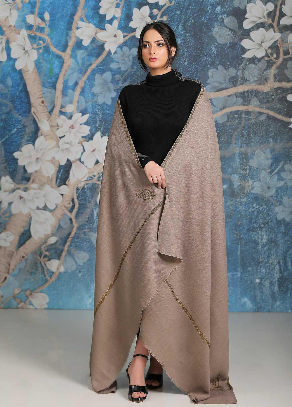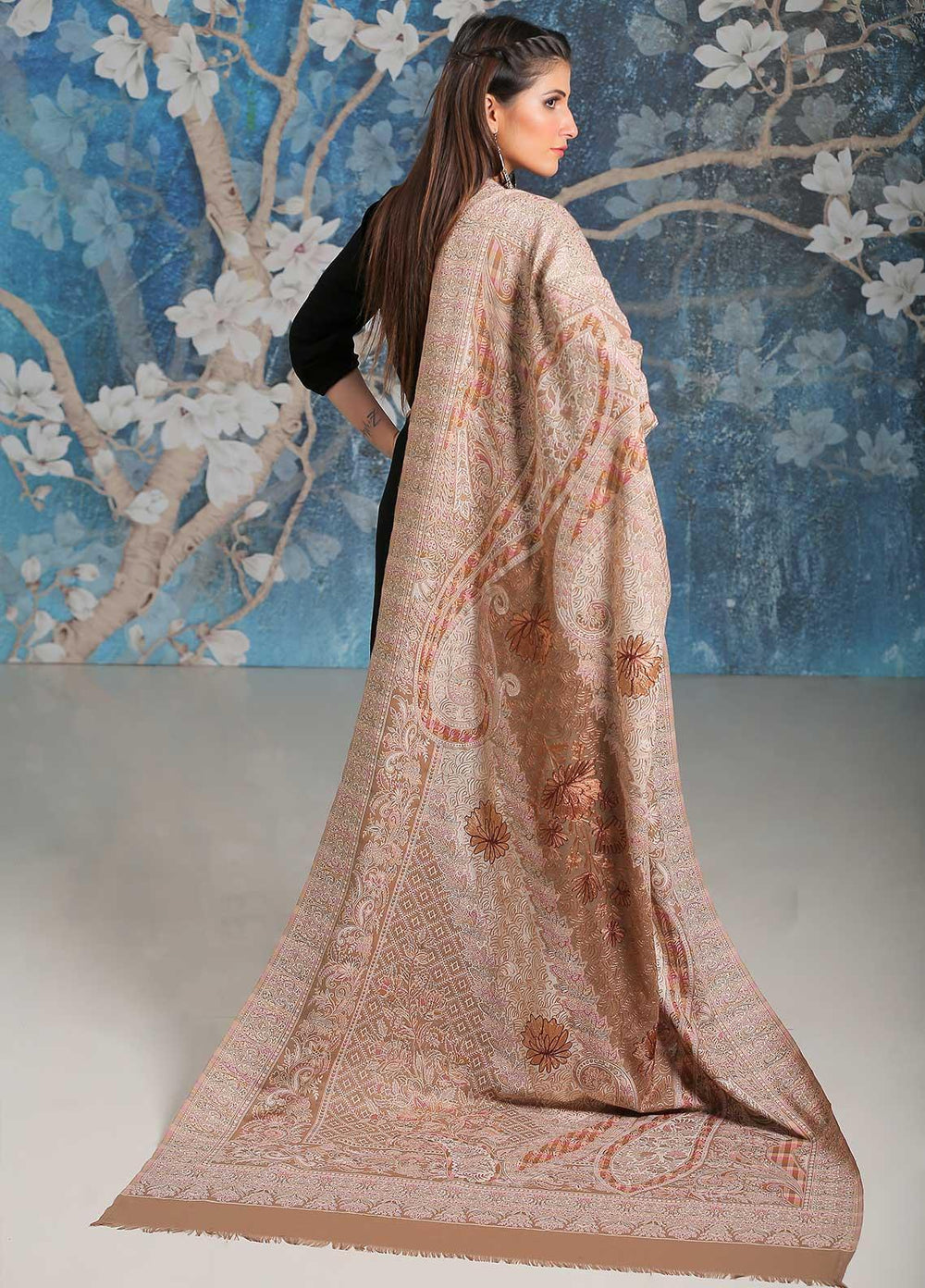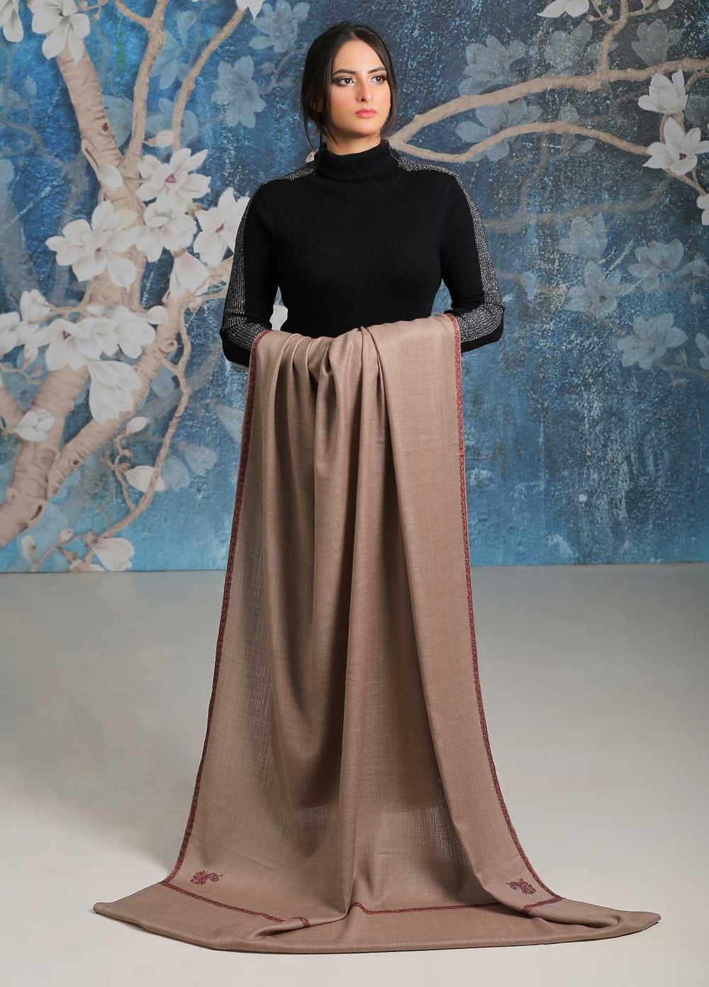 Sanaulla Exclusive Range Embroidered Pashmina Shawl SU21PP MIR-26 Fawn 3 - Pure Pashmina Shawls