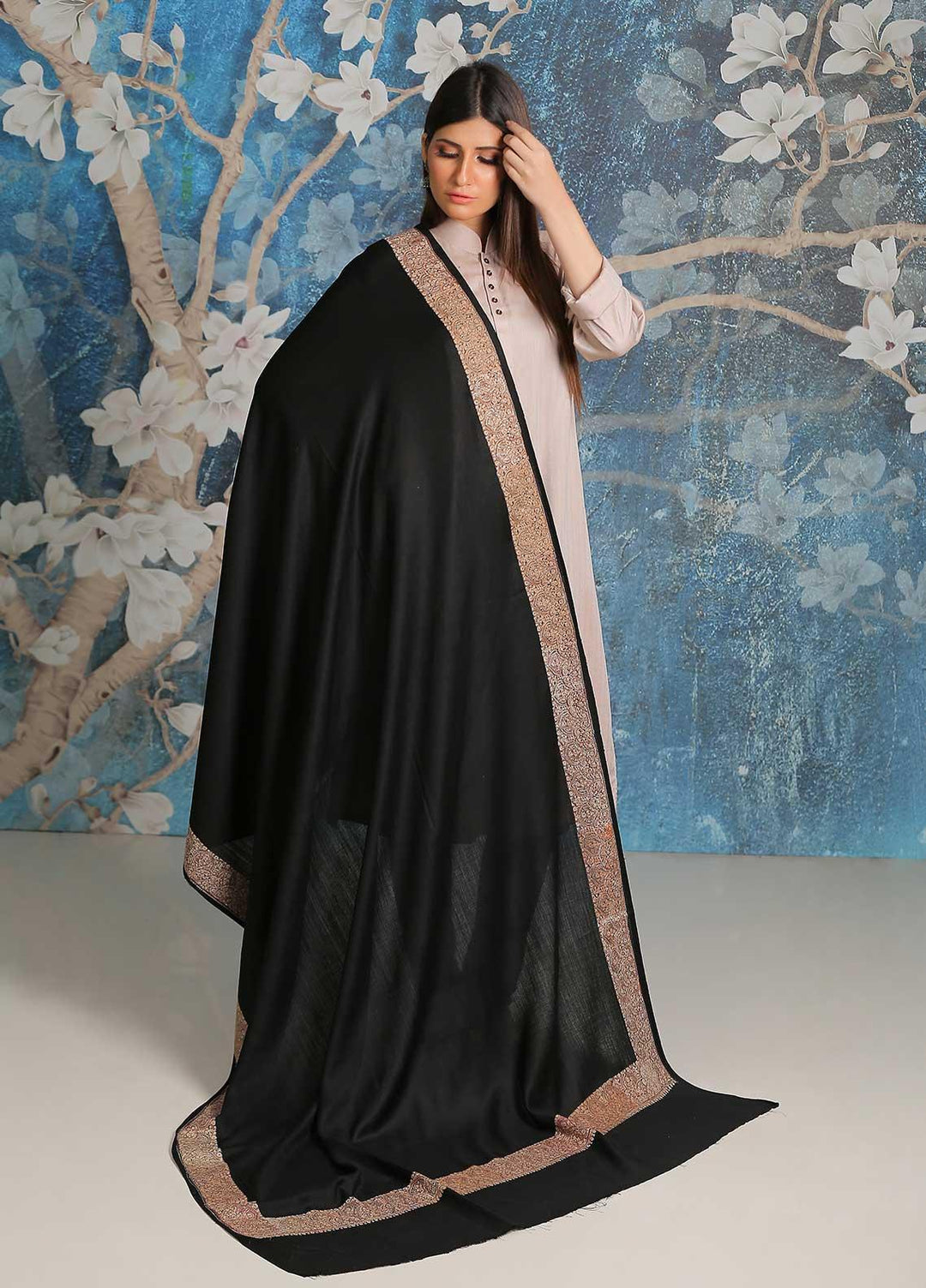 Sanaulla Exclusive Range Embroidered Pashmina Shawl SU21PP MIR-28 Black 2 - Pure Pashmina Shawls