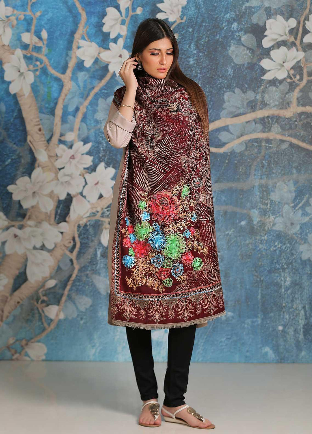 Sanaulla Exclusive Range Embroidered Pashmina Shawl SU21PP MIR-33 Maroon 2 - Pure Pashmina Shawls