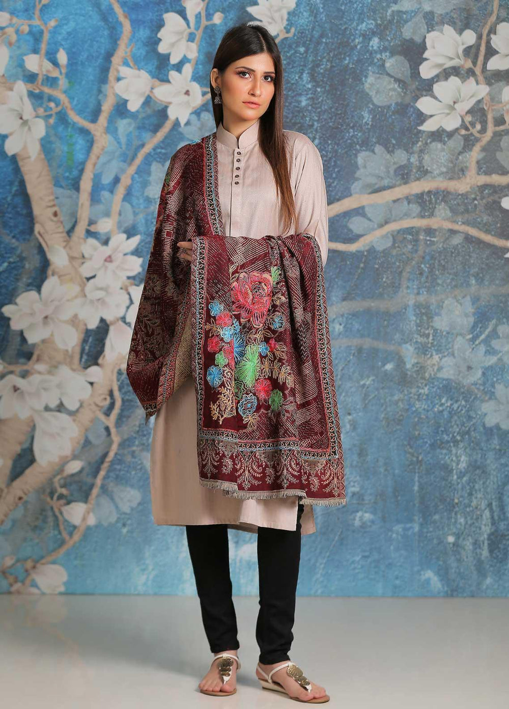 Sanaulla Exclusive Range Embroidered Pashmina Shawl SU21PP MIR-28 Maroon 1 - Pure Pashmina Shawls