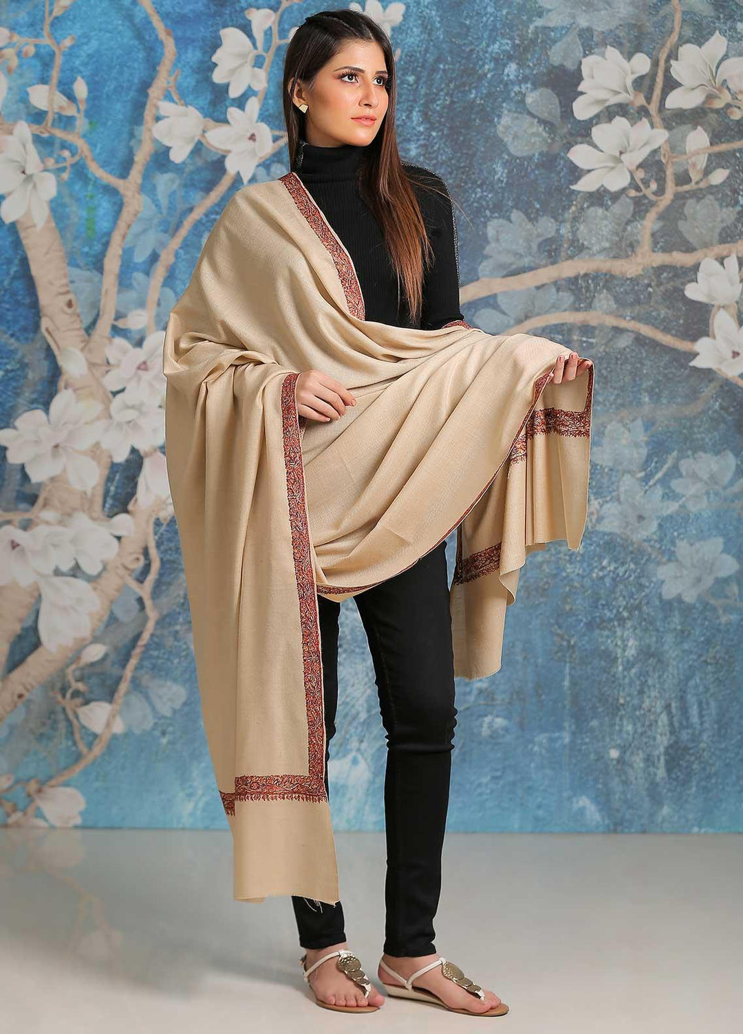 Sanaulla Exclusive Range Embroidered Pashmina Shawl SU21PP MIR-43 Beige - Pure Pashmina Shawls