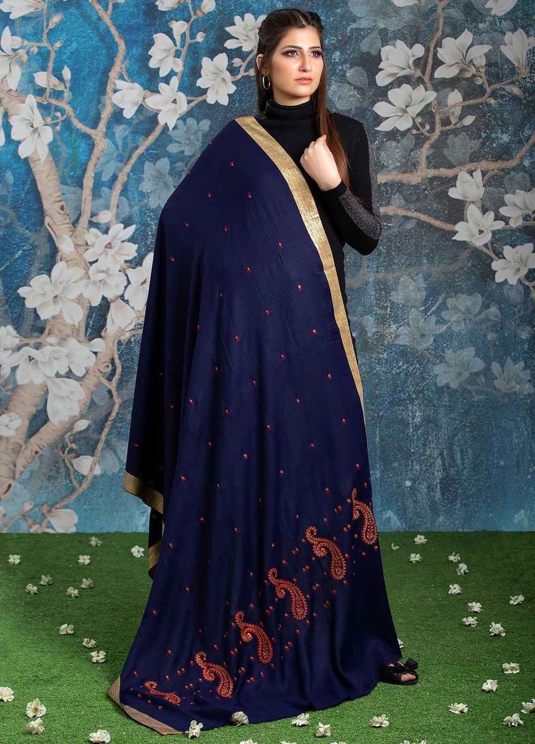 Sanaulla Exclusive Range Embroidered Pashmina Shawl MIR-41 Blue 4 - Pashmina Shawls