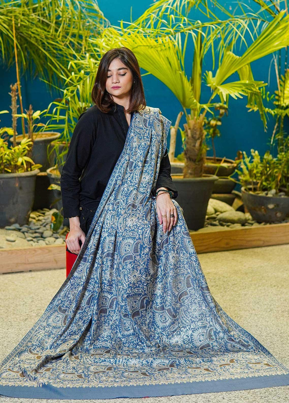 Sanaulla Exclusive Range Pashmina Shawls MAMA-41 Blue - Pashmina Shawls