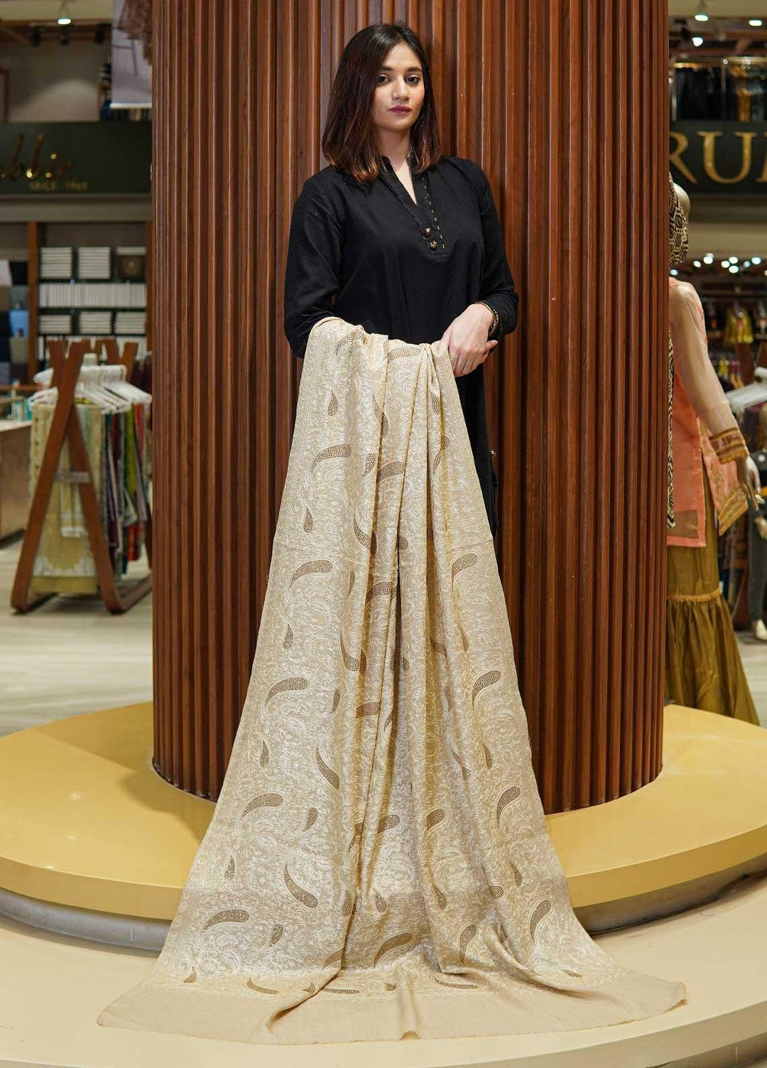 Sanaulla Exclusive Range Pashmina Shawls AKP-18 Beige 03 - Pashmina Shawls