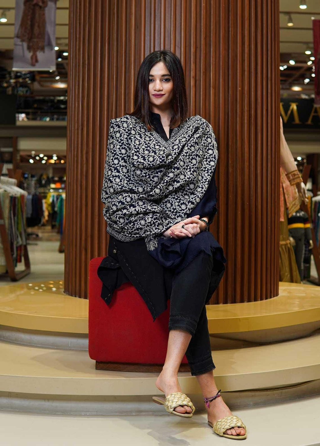 Sanaulla Exclusive Range Pashmina Shawls MAMA-27 Black-4 - Pashmina Shawls