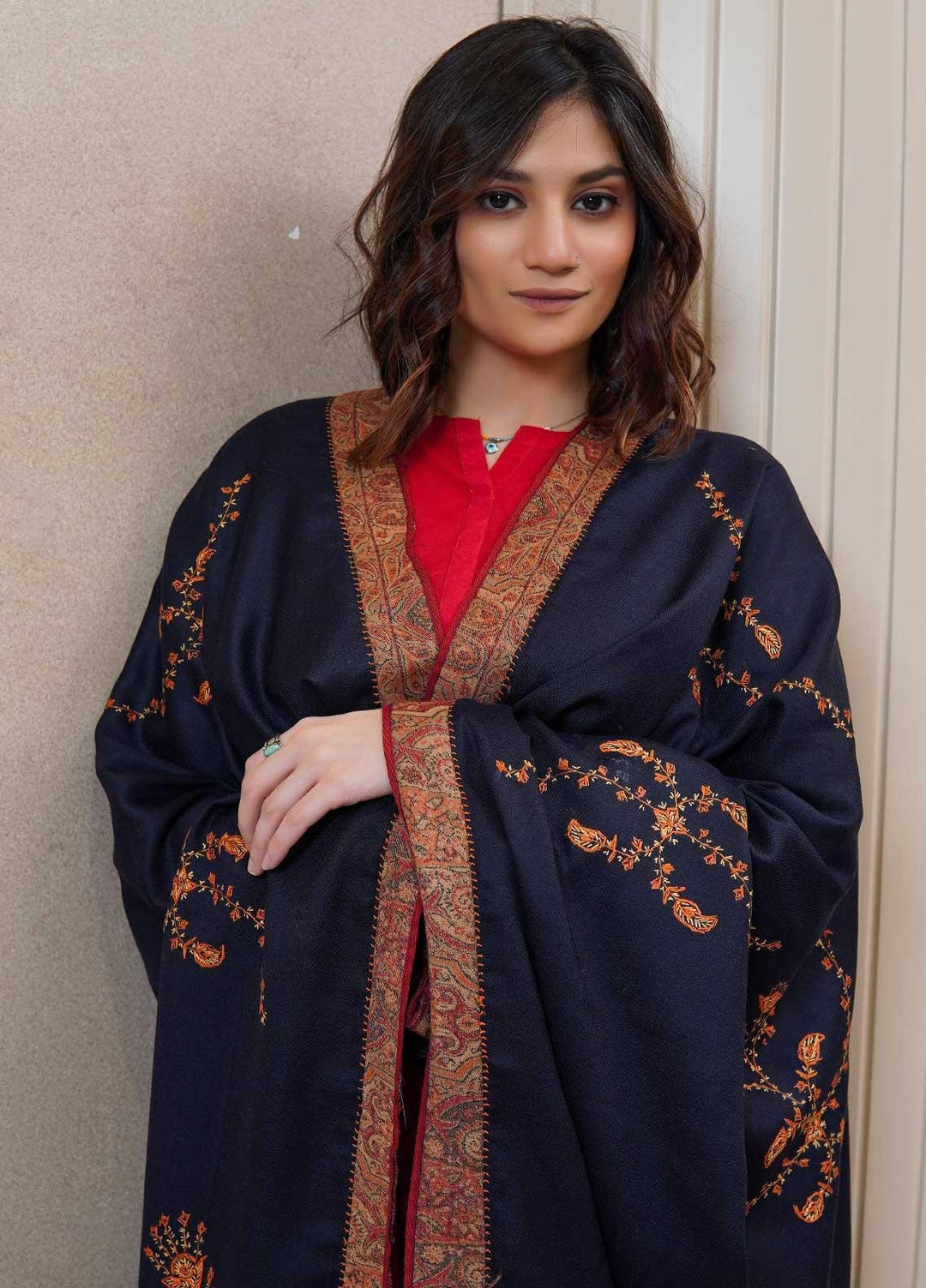 Sanaulla Exclusive Range Pashmina Shawls AKP-10 Navy - Pashmina Shawls