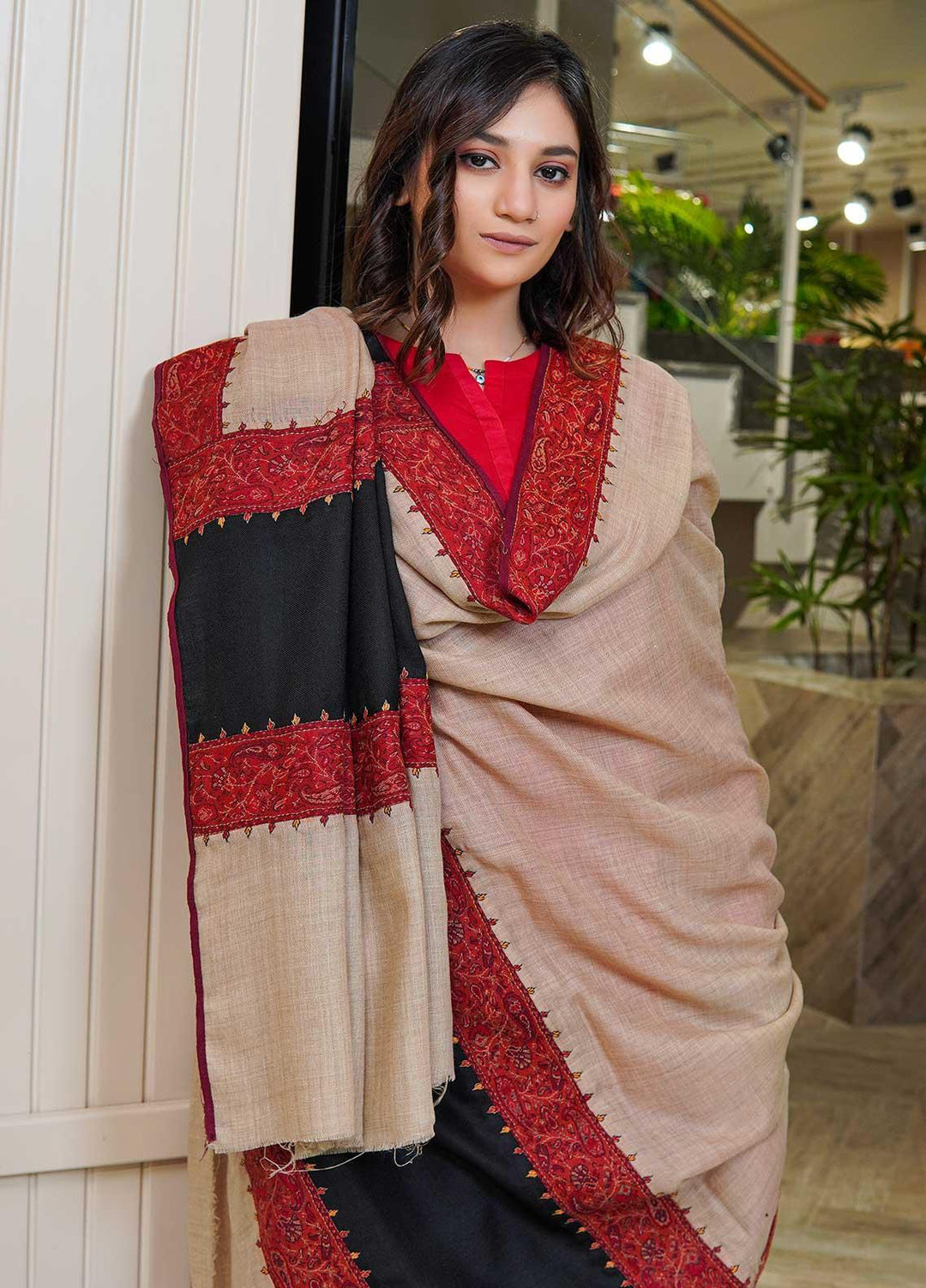 Sanaulla Exclusive Range Pashmina Shawls Zarri Hashey A Sp C AD KPS-31 Fawn04 - Pashmina Shawls