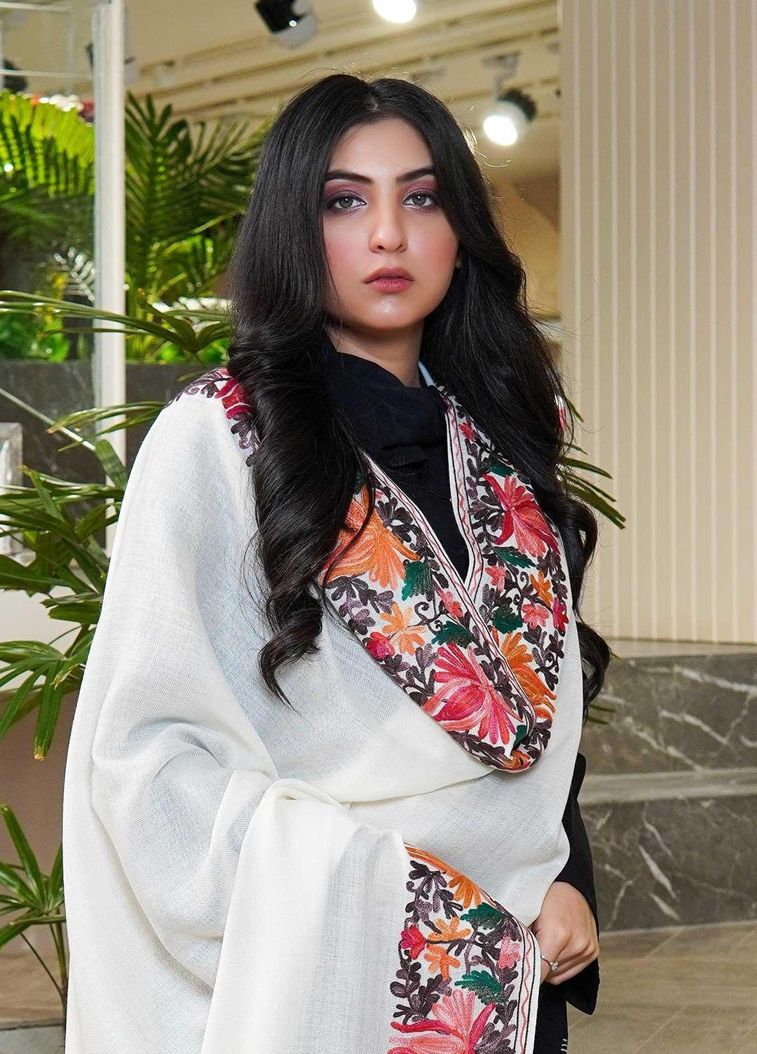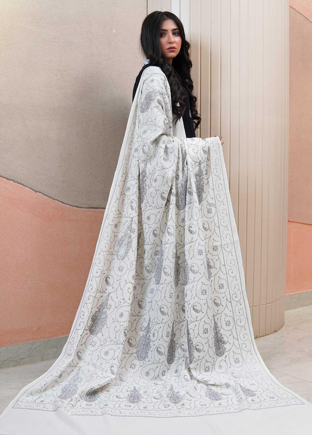 Sanaulla Exclusive Range Pashmina Shawls Nalki Zarri Kaalah Dour Hw KPS-36 White - Pashmina Shawls
