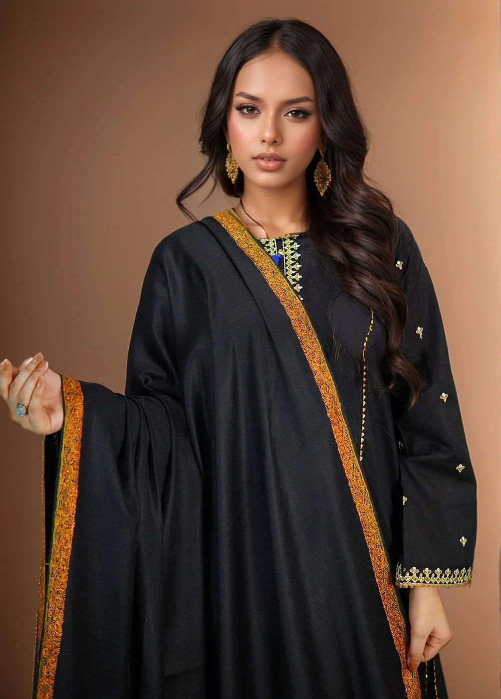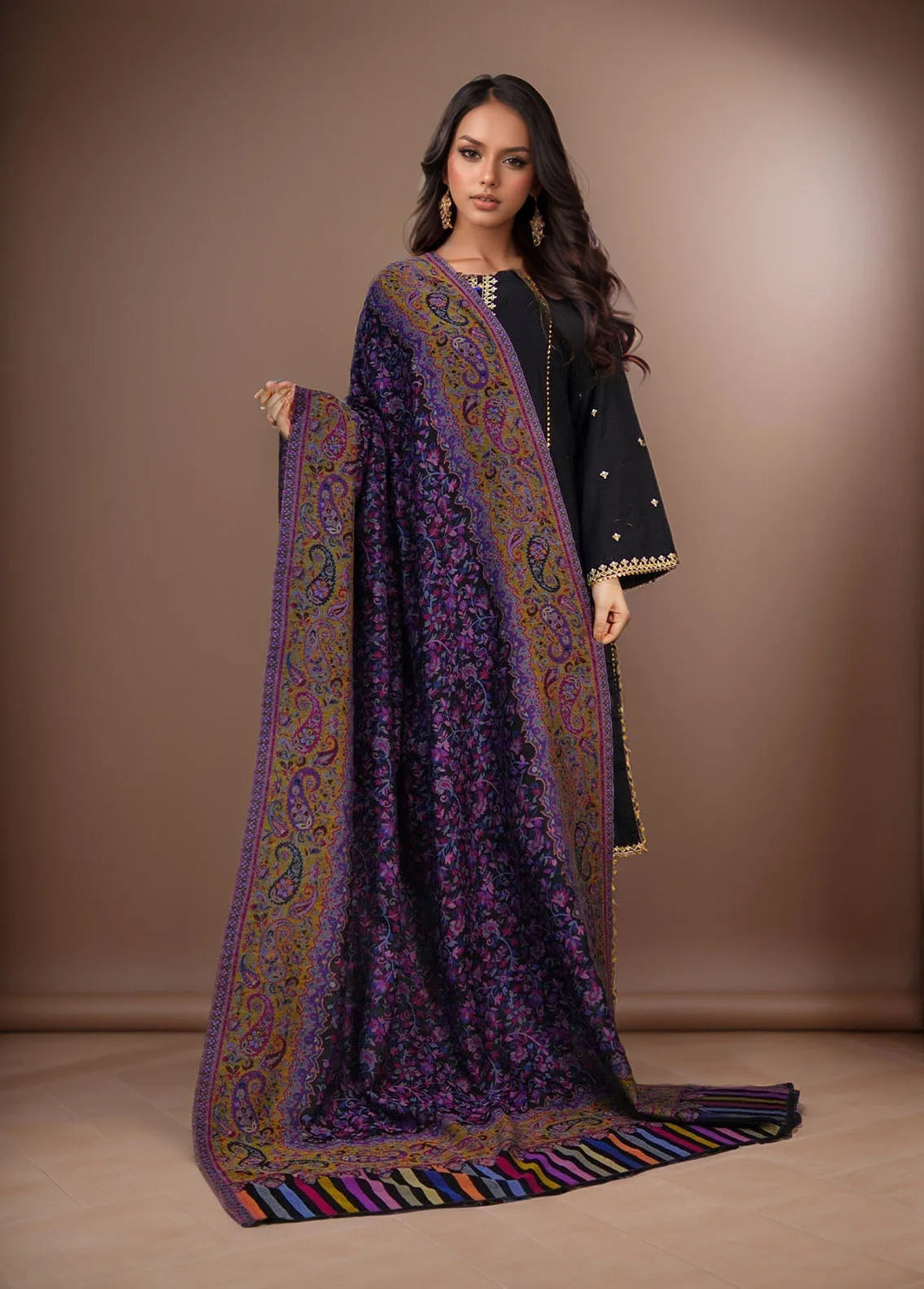 Sanaulla Exclusive Range Pashmina Shawl KPS D-28 Black - Winter Collection