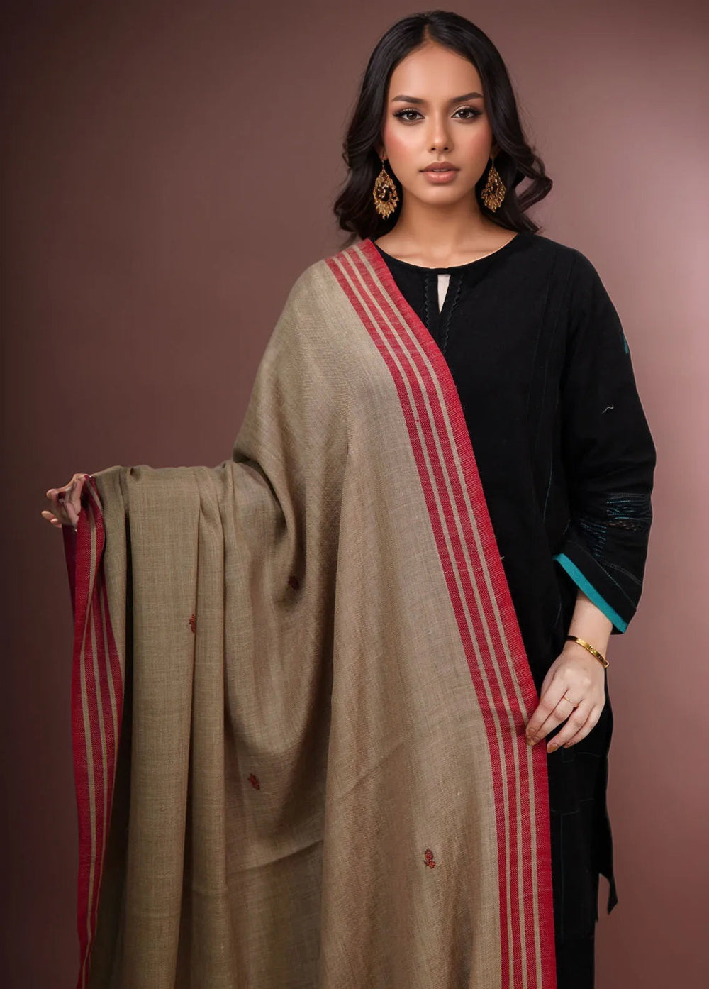 Sanaulla Exclusive Range Pashmina Shawl KPS D-42 Dark Brown 1 - Winter Collection