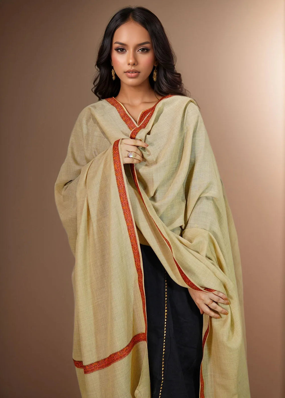 Sanaulla Exclusive Range Pashmina Shawl MAMA D-11 Fawn 1 - Winter Collection