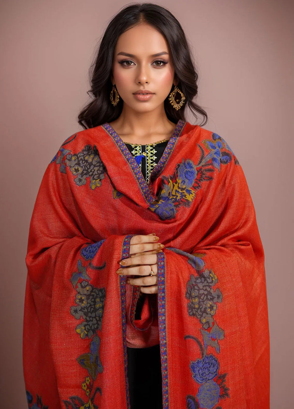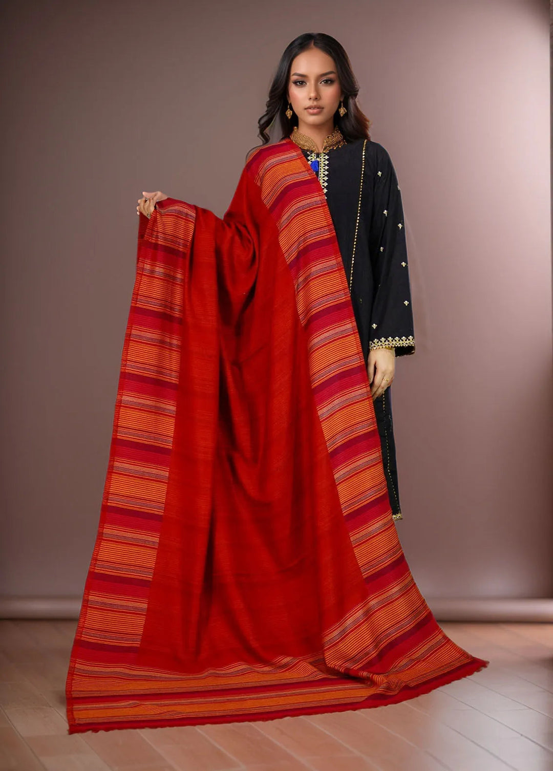Sanaulla Exclusive Range Pashmina Shawl KPS D-42 Red - Winter Collection