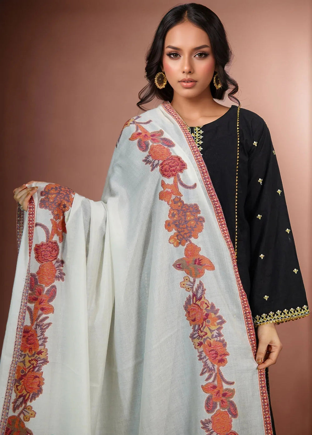 Sanaulla Exclusive Range Pashmina Shawl KPS D-10 Black 1 - Winter Collection