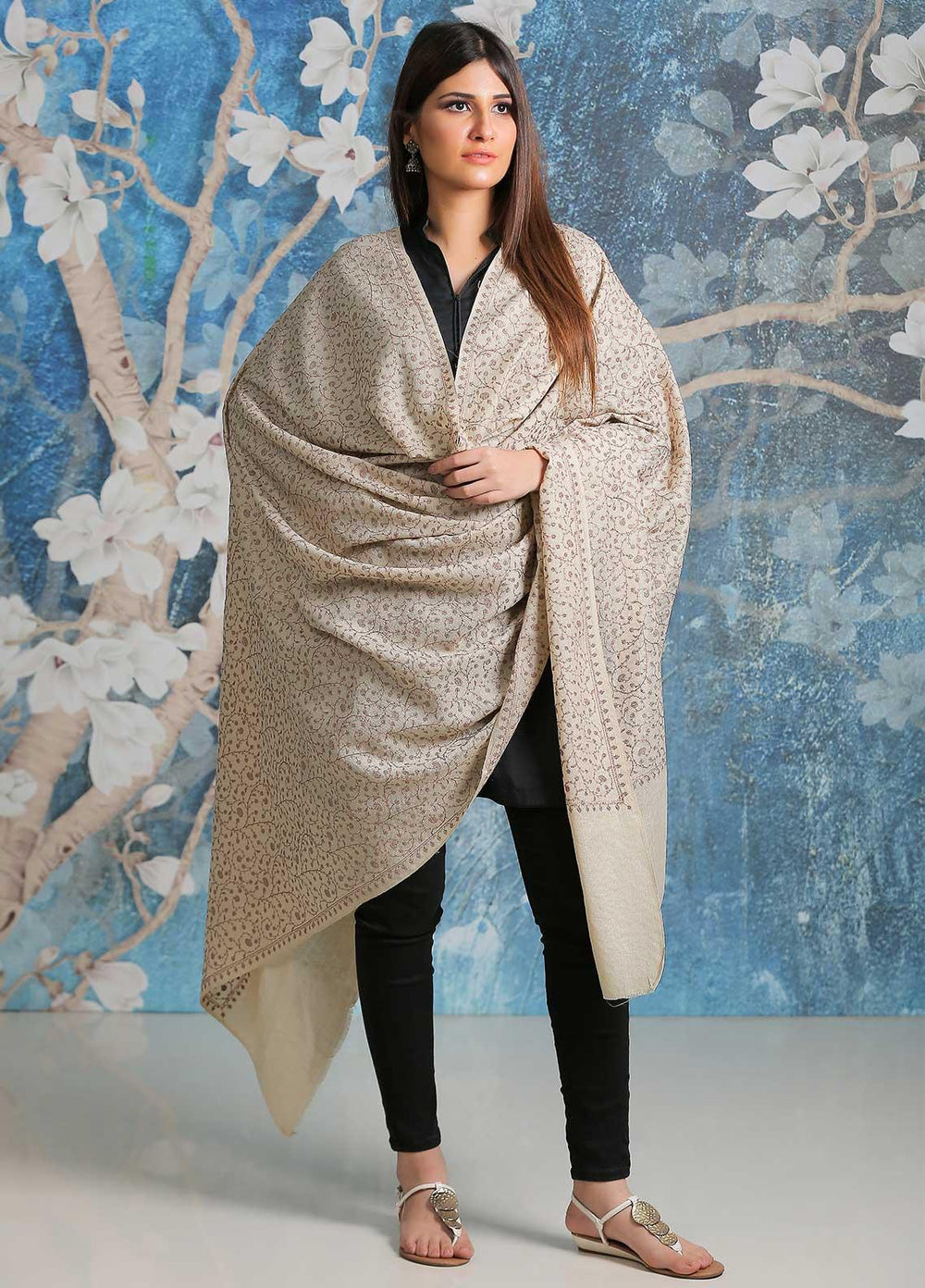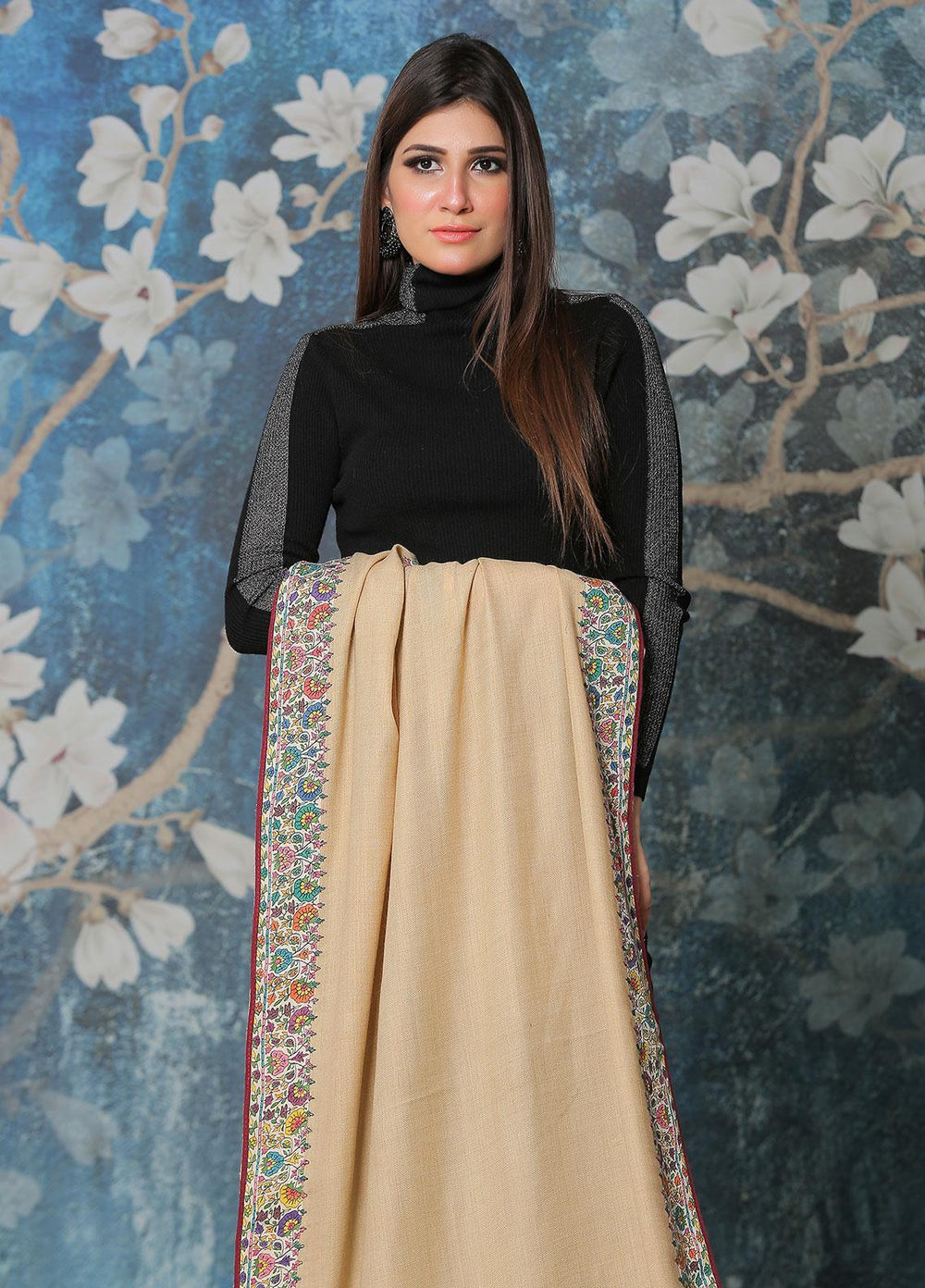 Sanaulla Exclusive Range Embroidered Pashmina Shawl SU21PP AKP-39 Beige-3 - Pure Pashmina Shawls
