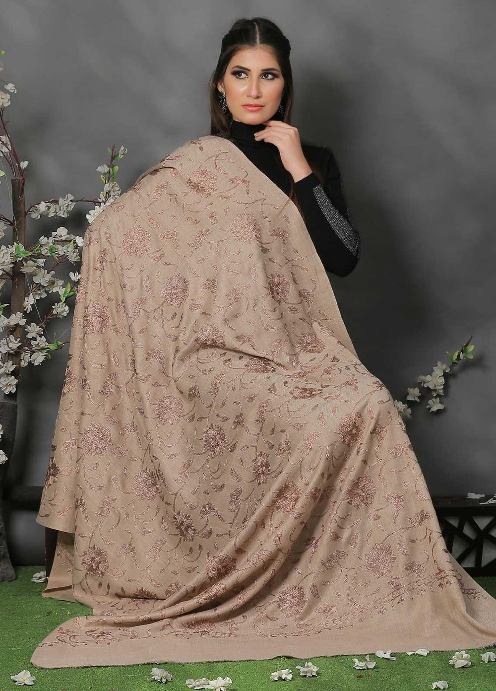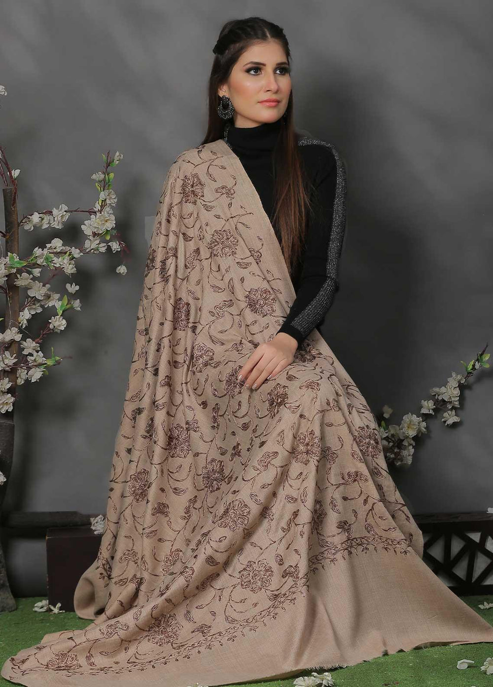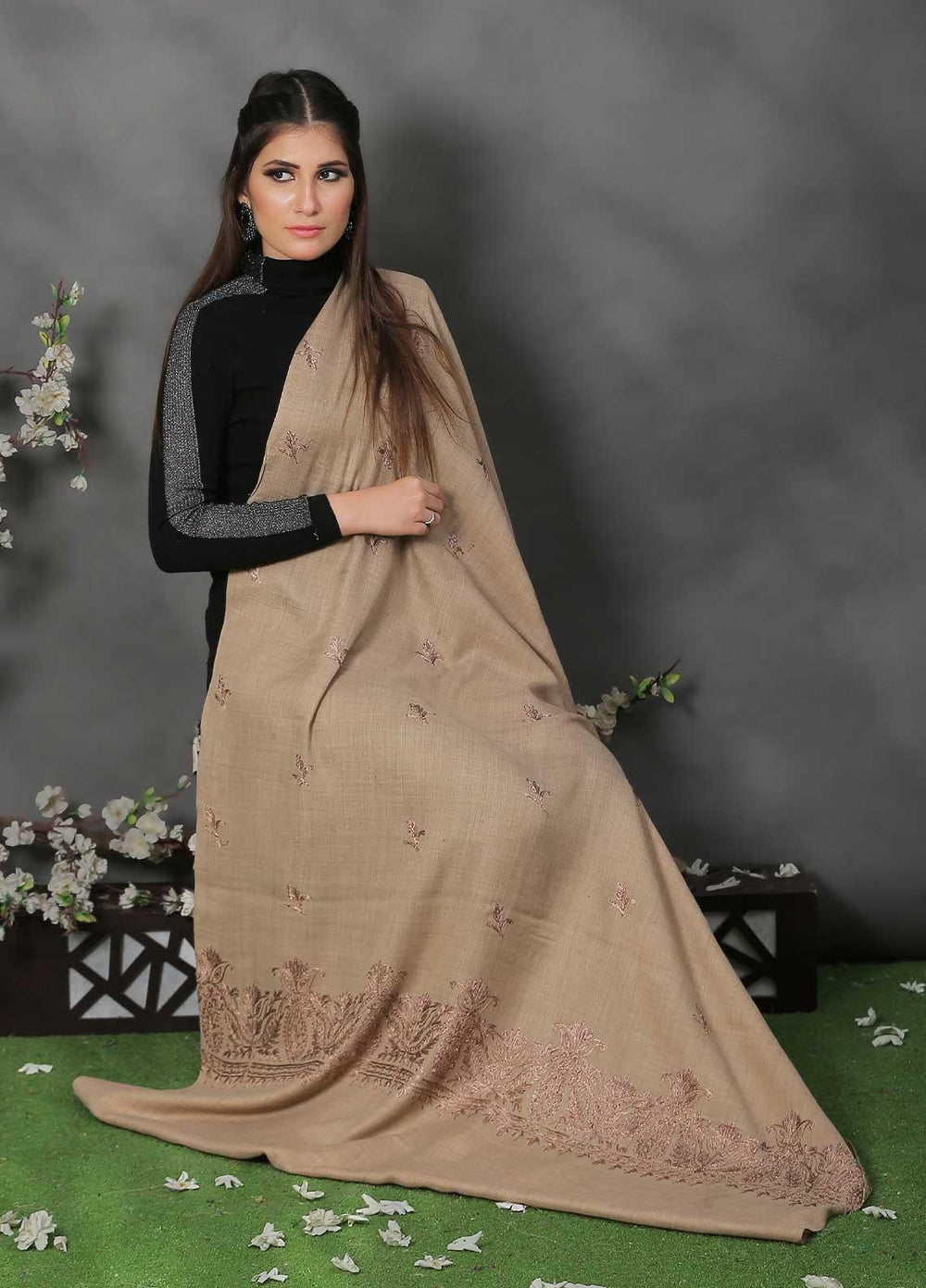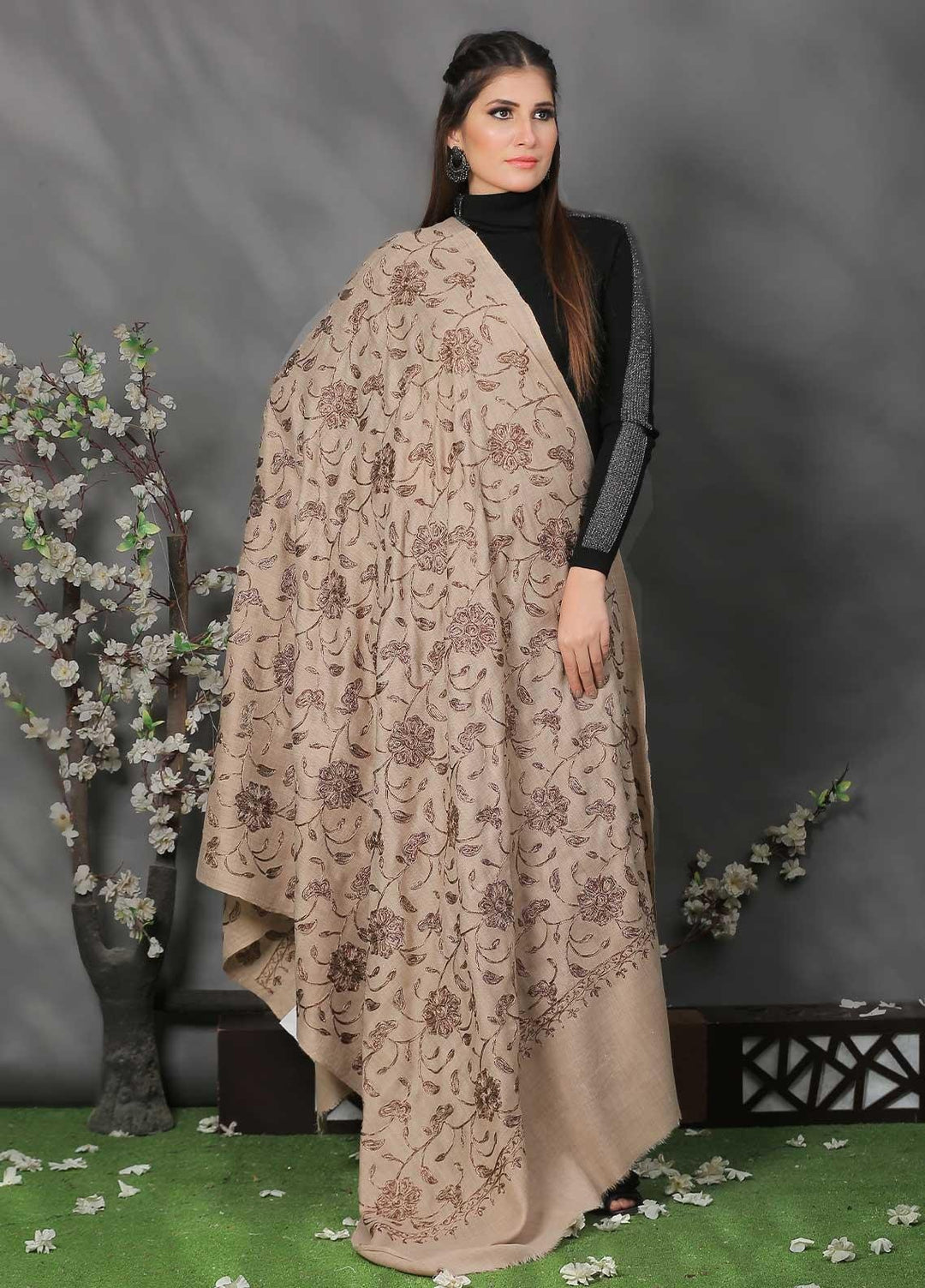 Sanaulla Exclusive Range Embroidered Pashmina Shawl SU21PP AKP-21 Fawn-1 - Pure Pashmina Shawls