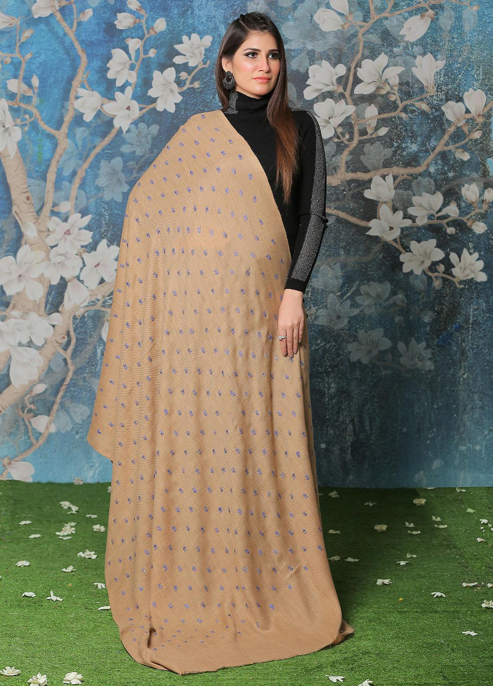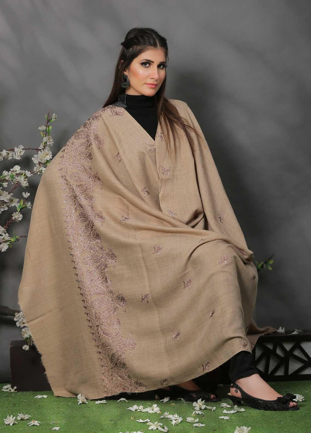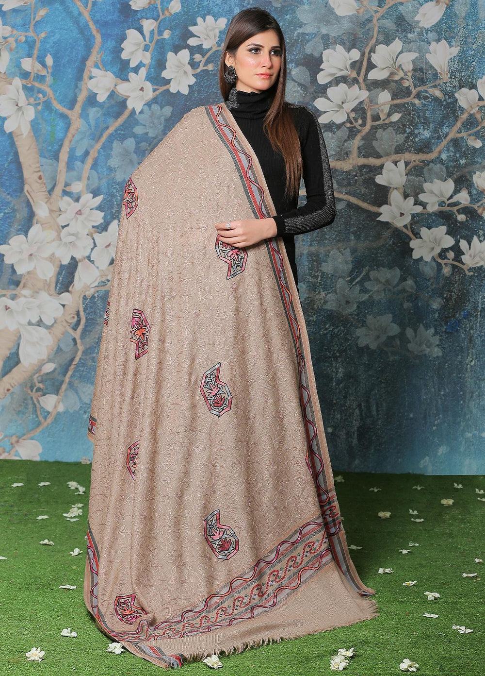 Sanaulla Exclusive Range Embroidered Pashmina Shawl SU21PP AKP-21 Fawn-1 - Pure Pashmina Shawls